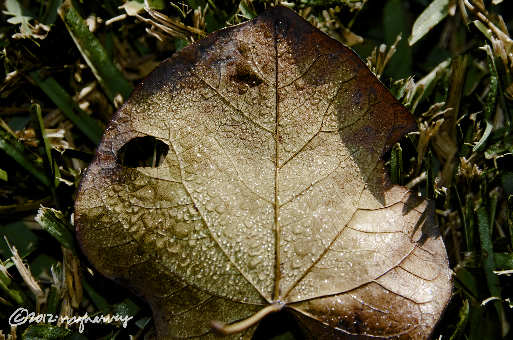 A dewy leaf, early morning.