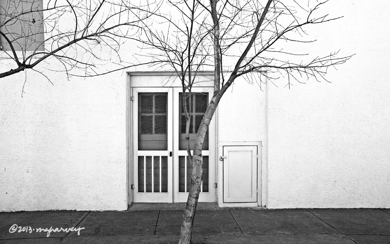 I saw these fantastic doors along West Lincoln Street, just west of Highland Avenue. In deference to regular readers of my blog, I am posting the black and white version first: I don’t want to startle anyone.