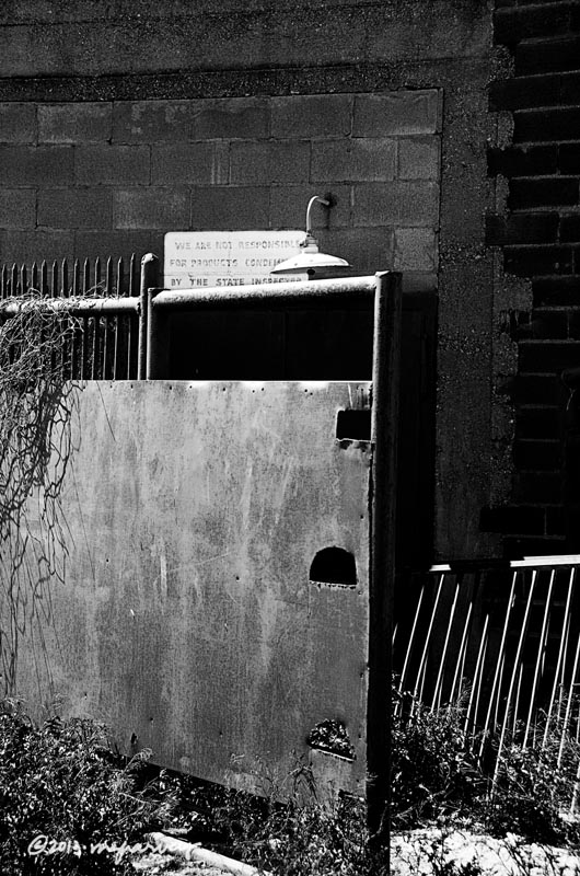 That sign behind the light? It says, “We are not responsible for products condemned by the state inspector.”