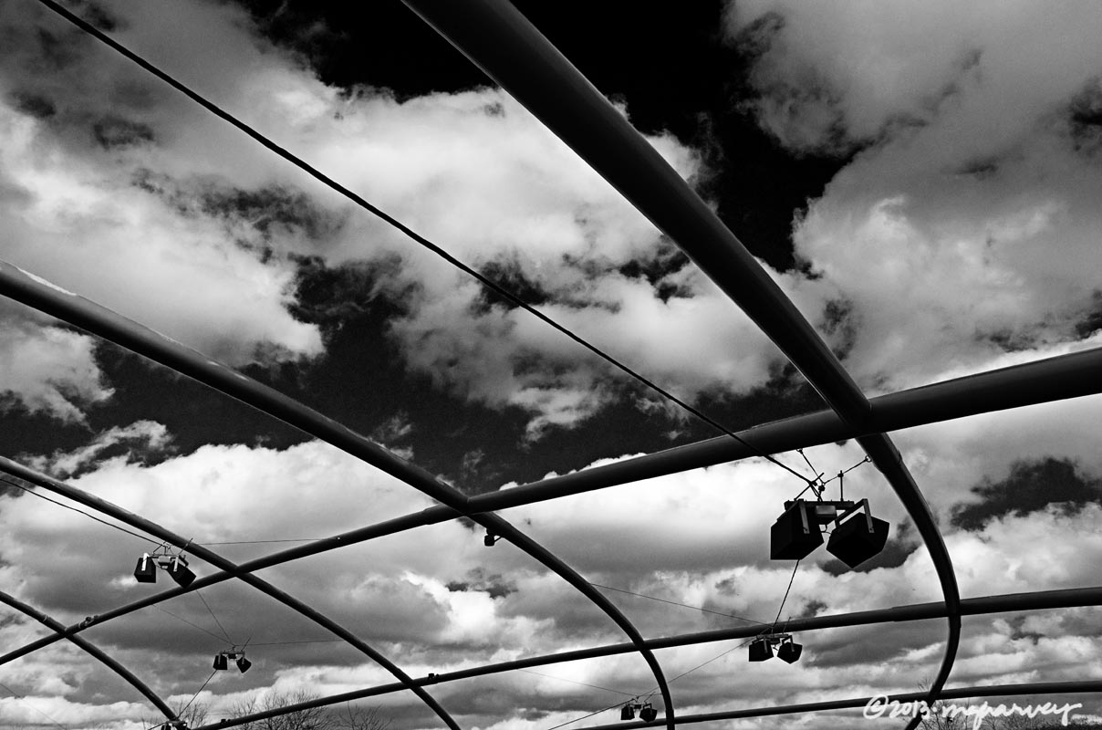 I do like this, the structure to hold up sound and lighting equipment. It spans a grassy lawn, where concert-goers can listen to some music. (Monday, June 17, 2013: Daniel Lanois)