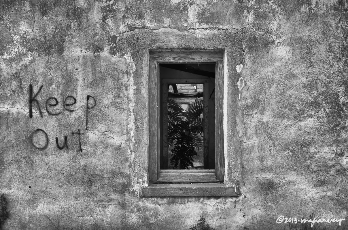 – The KEEP OUT painted on the wall, because the state of the yard made the sign unnecessary.