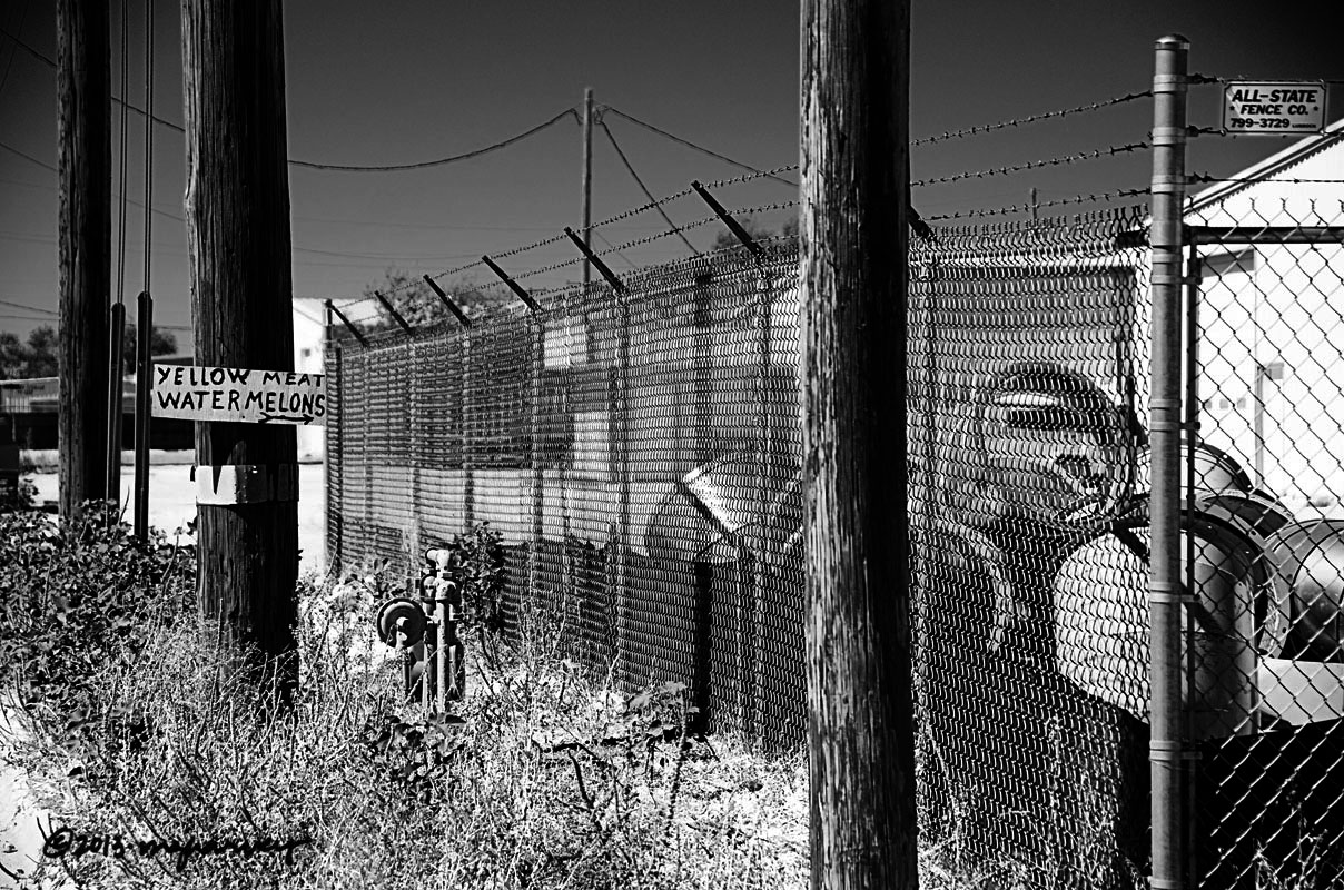 2. I find this photo appealing mostly for the abundance of utility poles and chain link fence but also for the sign. I confess I never heard of yellow meat watermelons.