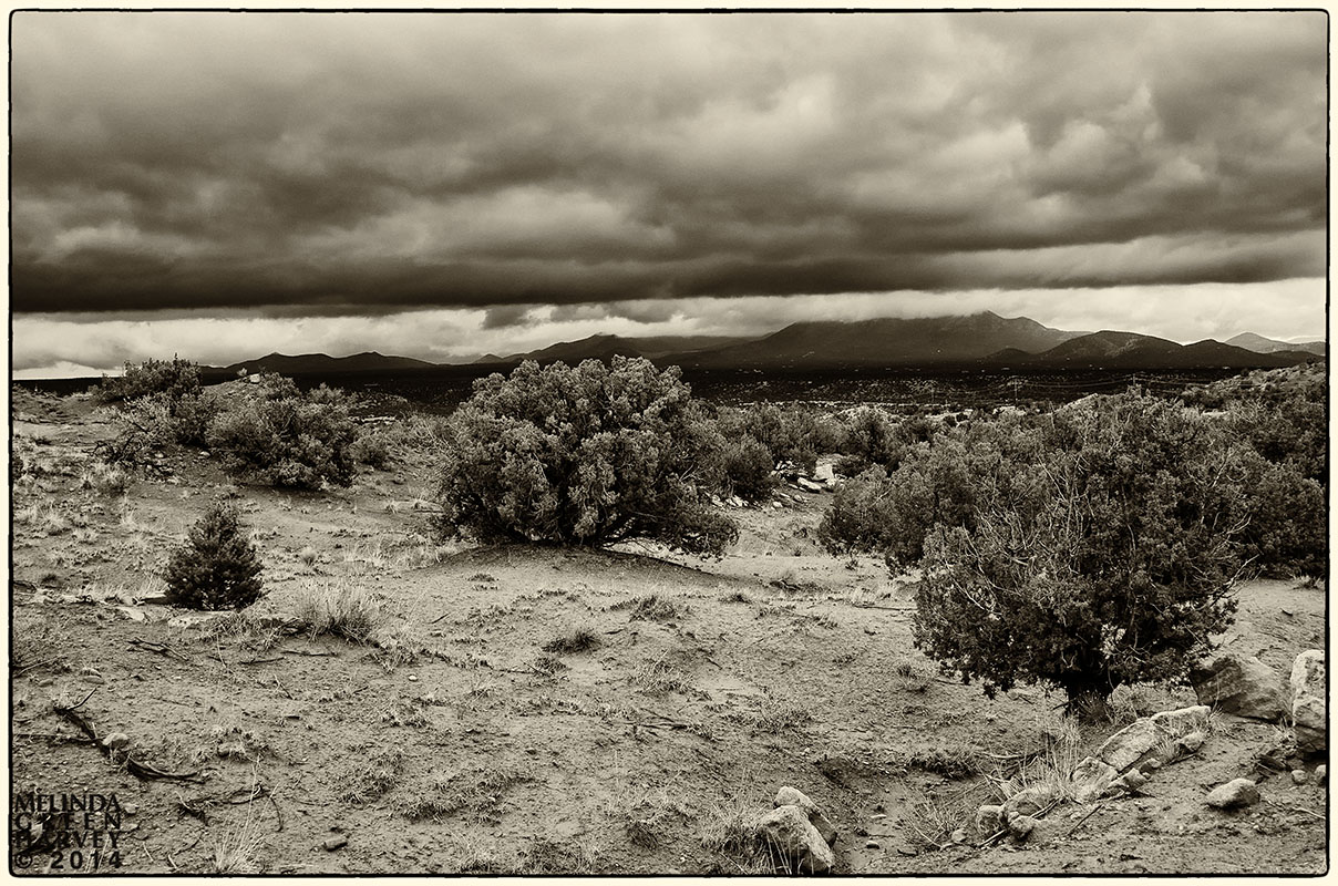 This is looking south (why look just to the east, especially when the sunrise is less than expected?) toward the Sandia Mountains, the tops of which are shrouded.