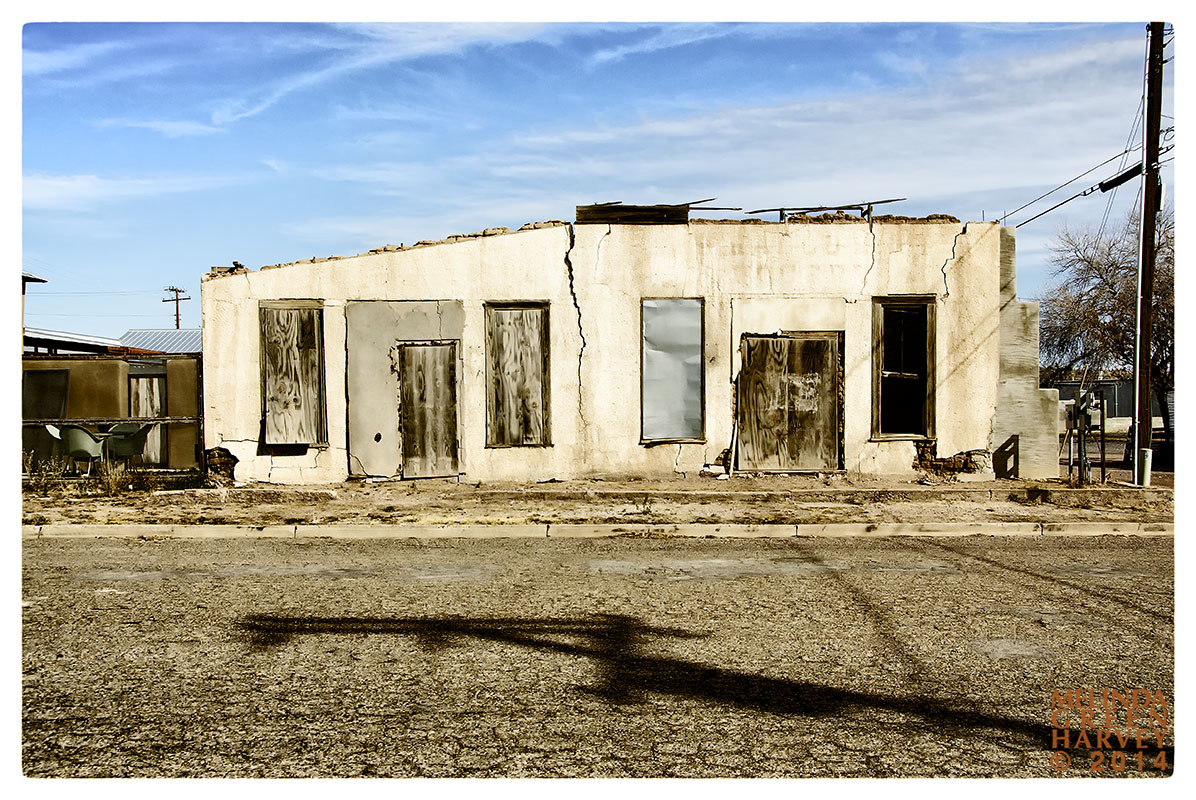 The road snakes its way back toward Santa Rosa, behind this adobe building, which I have taken the liberty of calling a duplex.