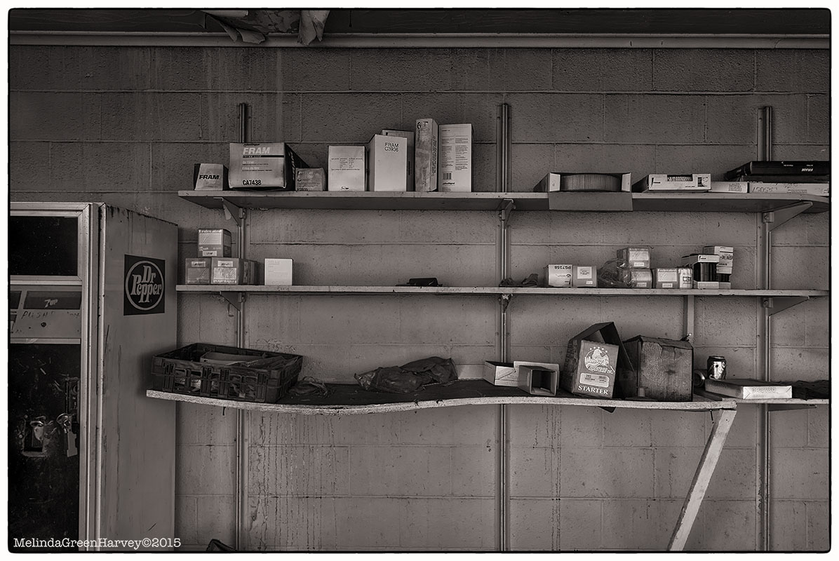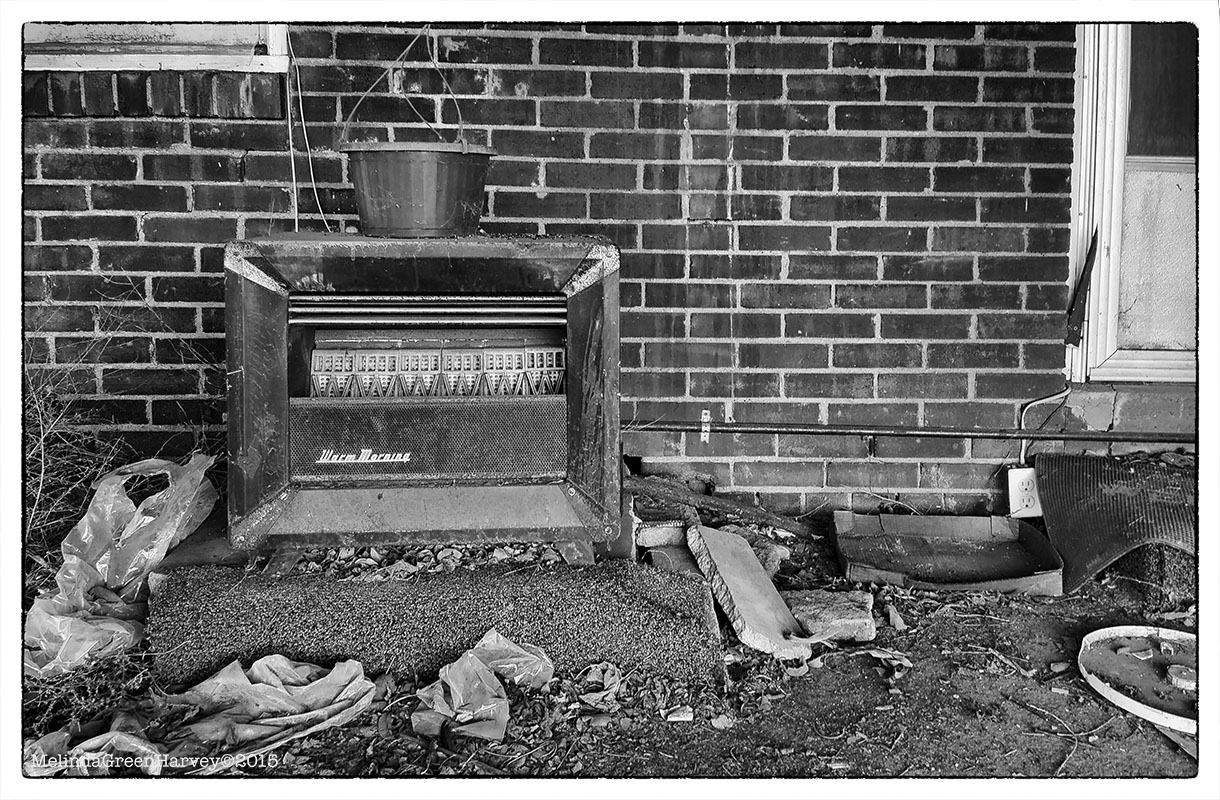 My traveling companion for the day spotted an un-boarded door around back, which gave us a nice view down the hallway.