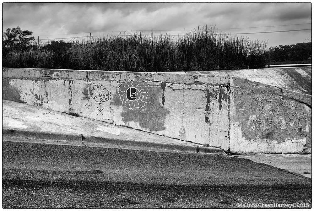 It’s a nice place, now, with trails and picnic tables and lakes. And, along the side of the last dam in the chain, there’s a bit of interesting graffiti.
