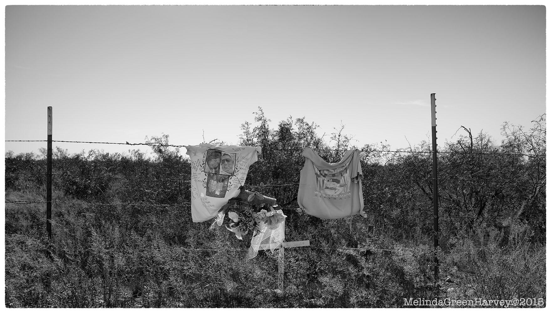 For many years, I photographed roadside memorials (like this one) as part of an ongoing project,* but it had been almost a decade since I’d stopped at one. I don’t know why this one captured my attention enough to make two u-turns to get to it, but it did. And so it was that there, in the heat and the prickly weeds and serenaded by locusts, I examined the relics of a life that ended where I stood.