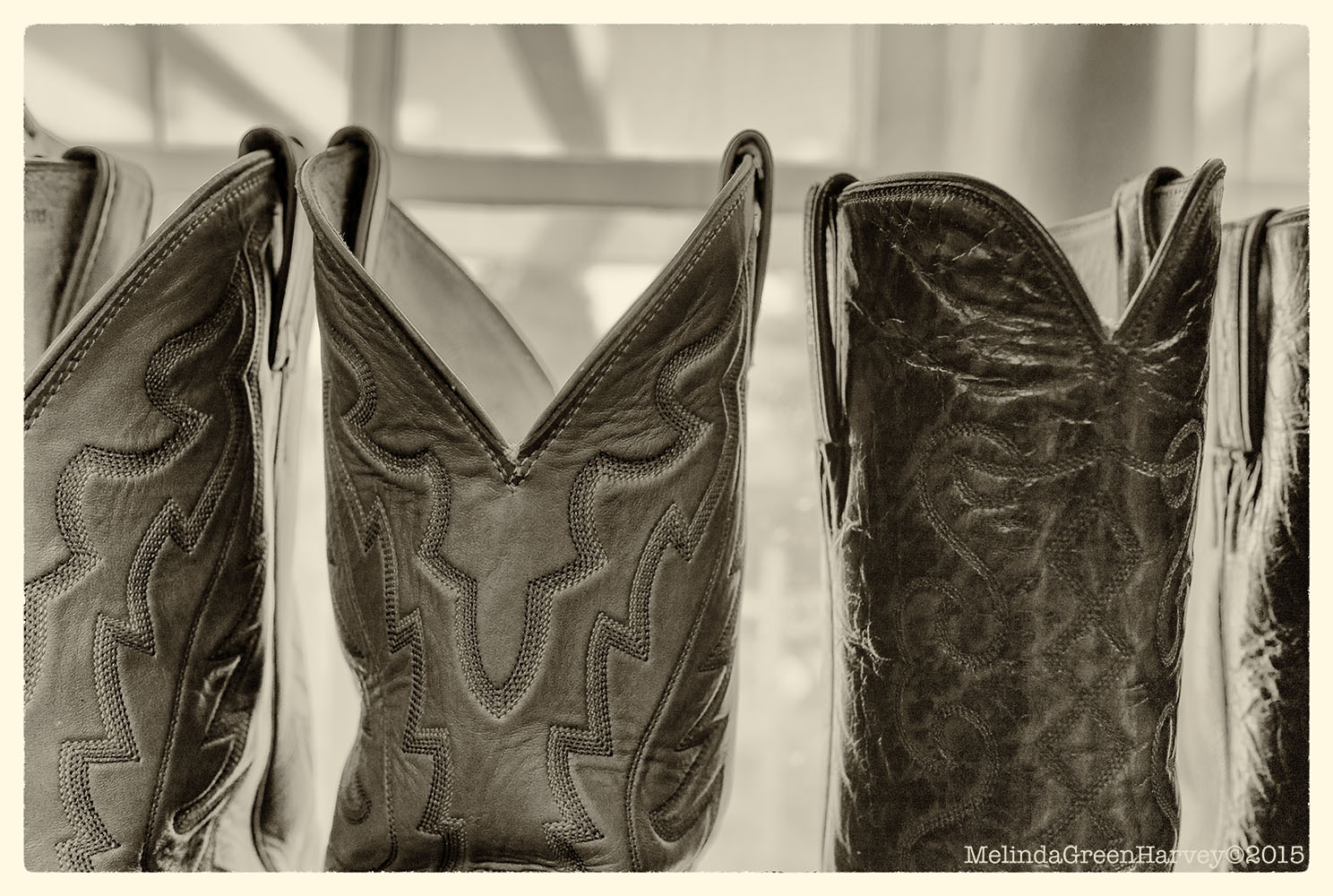 The antique store (or junk store, or collectibles store, depending on your opinion of the merchandise) was organized thematically. In the western room, several pair of worn boots (or used, or vintage, again depending on your opinion) were lined up in front of the window that faced the highway through town.