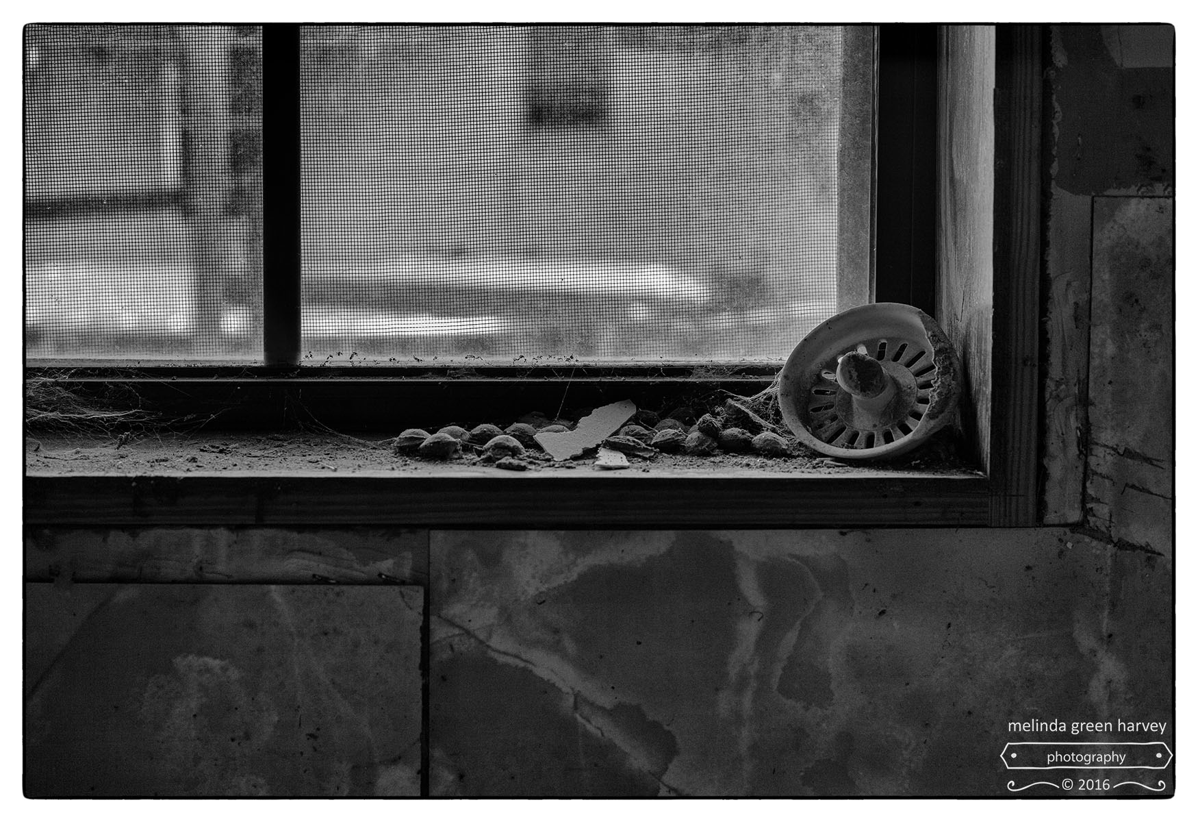 The kitchen windowsill from the same house in yesterday’s post. That’s quite a healthy collection of cobwebs, isn’t it? And how about that thick coating of dust on everything?