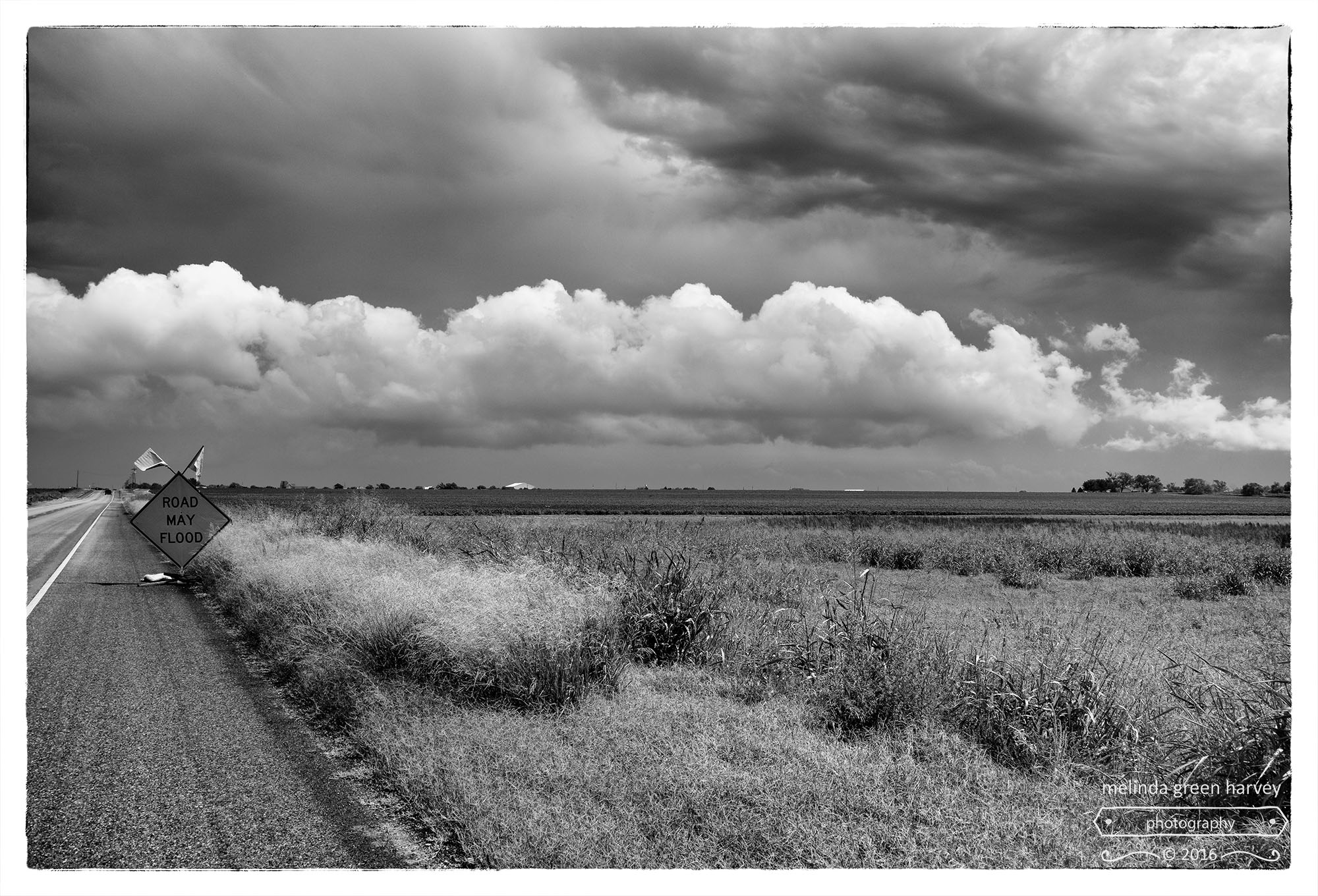 (Update: the road did not flood. The weather forecast for the day I made this shot was for 0% chance of rain, and 100% chance for the next day. I am sure you’re not surprised to learn that it rained on the first day, and not the second. And that there wasn’t enough rain to flood anything. Even an entire roadway.)