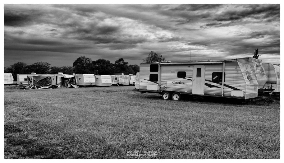 This place? Yeah, I have no idea what was going on – there were hundreds of travel trailers, in varying degrees of falling apart, parked side by side by side. (You can see an aerial view here. And now there are even more trailers than this view shows.)