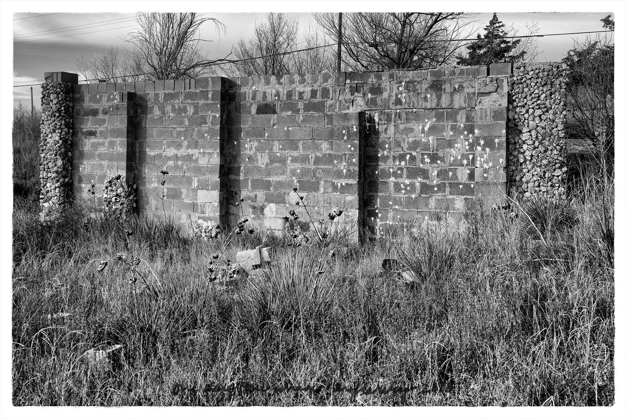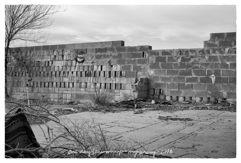 One of the neighborhoods that was particularly hard hit was on the north side of town, near the Lubbock Country Club. Look at this list of fatalities and you’ll see Mesa Road listed over and over again. This is that part of Mesa Road as it looks now. A Facebook friend told me about this location. He said, “See that red wall? For years and years a lady would come out and put up a few blocks at a time, and even slung some paint on it. I was told her family died in the house…There’s a little less there each year.”