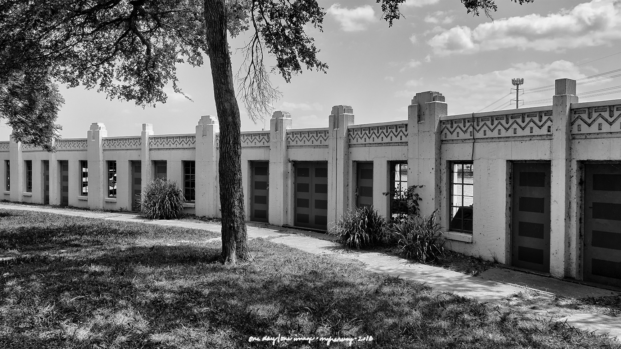 We had one day in Dallas, and it was somewhere above 100°, with the humidity not all that far behind. The plan for the day became “air conditioning is essential” and so we decided to take a drive, in our nicely air conditioned rental car, around White Rock Lake in Dallas. And that’s how we found this boathouse, which was built in the 1930s. According to this article, “When the bathing beach opened in the summer of 1930, Dallas Mayor J. Waddy Tate arranged for the city streetcar line to be extended out to the western shore of White Rock Lake. From this 36-berth boat house, a fleet of speedboats were used to ferry parkgoers to the opposite shore.”