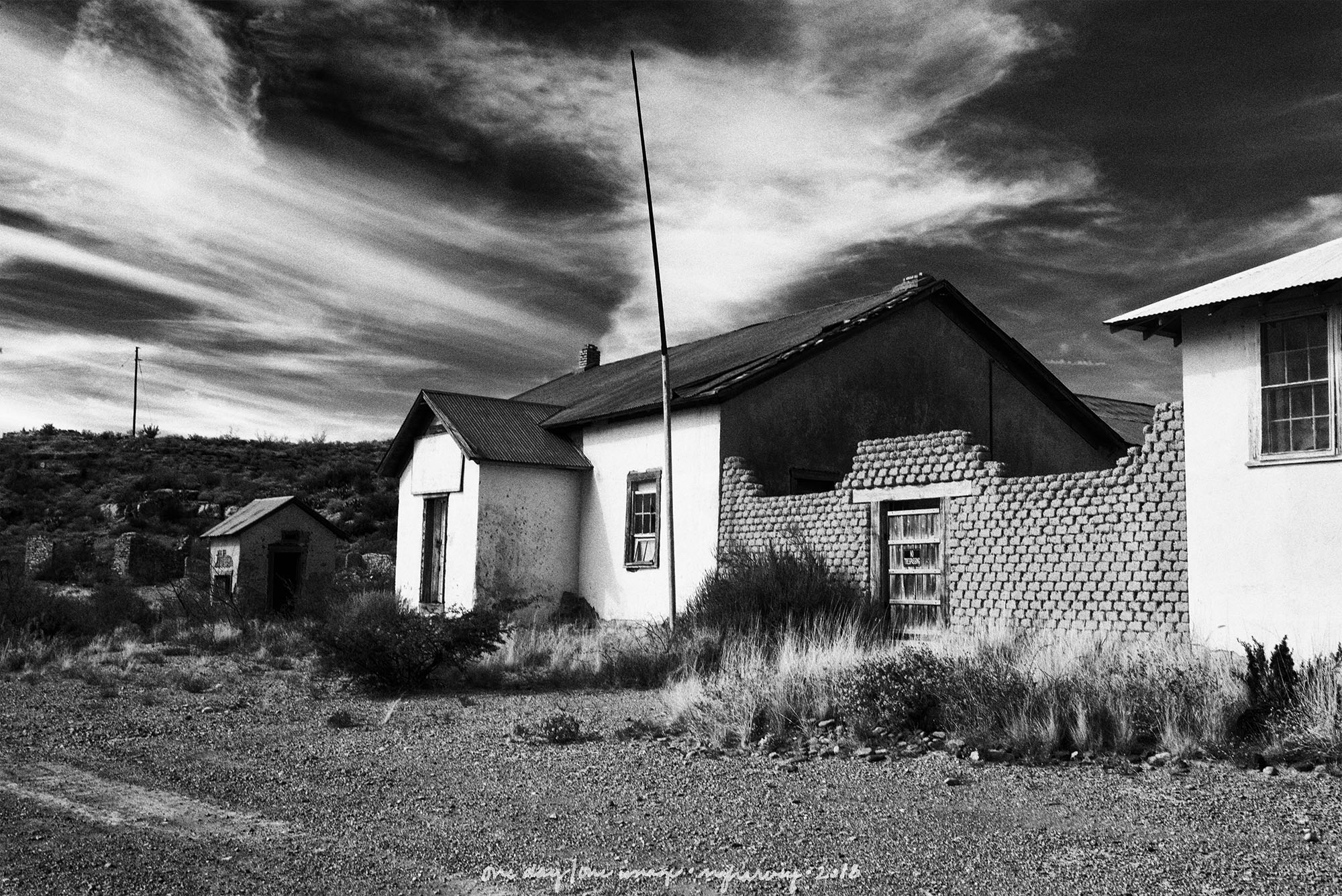 They tried, the builder of that adobe wall between two abandoned buildings. But it looks like the new wall will soon meet the predicable fate of the other buildings. In fact, the adobes are already starting to erode, returning to the dirt they’re made from.
