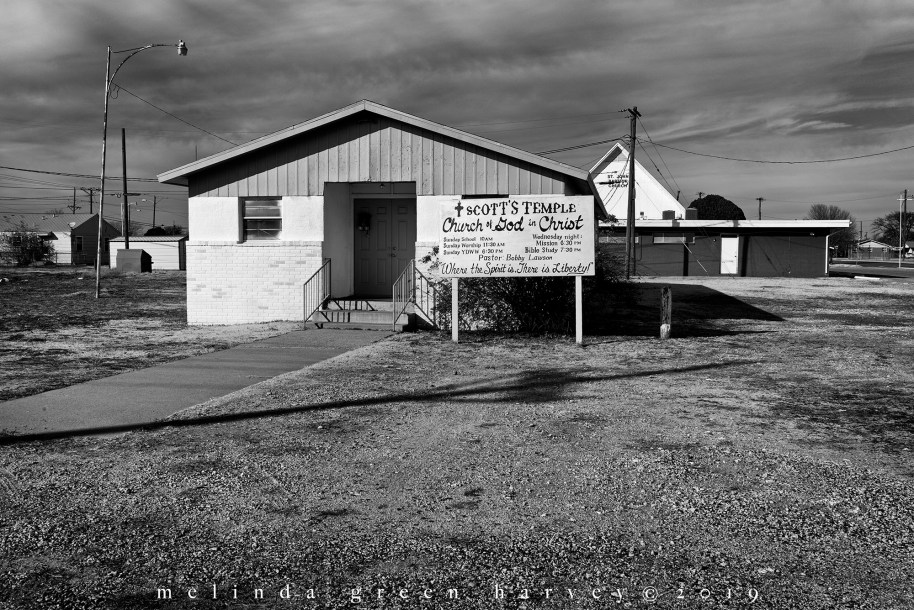 The street that leads to the City of Lubbock cemetery passes by Scott’s Temple; behind Scott, the St. John Baptist Church looms large. It’s like some kind of theological showdown is about to happen.