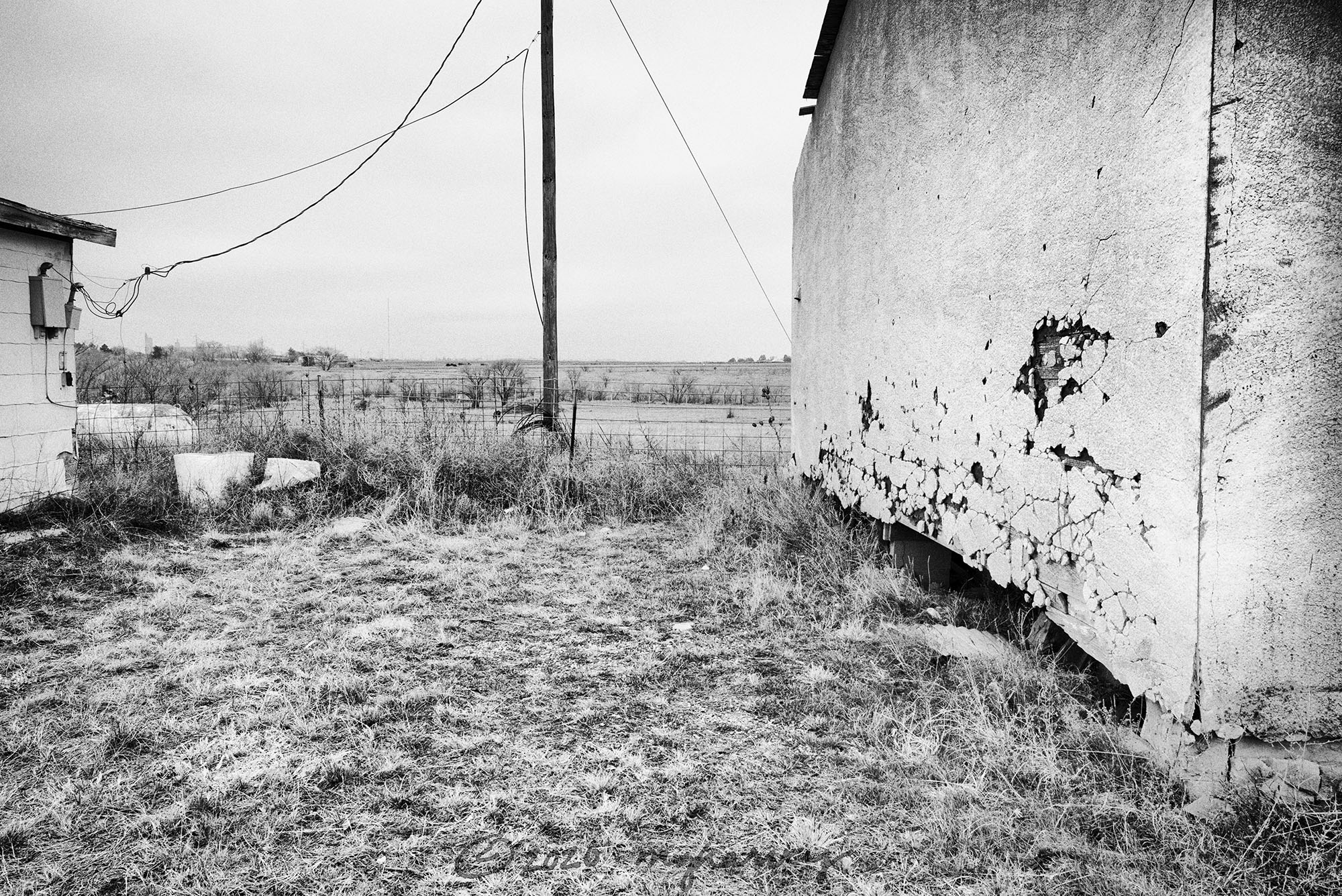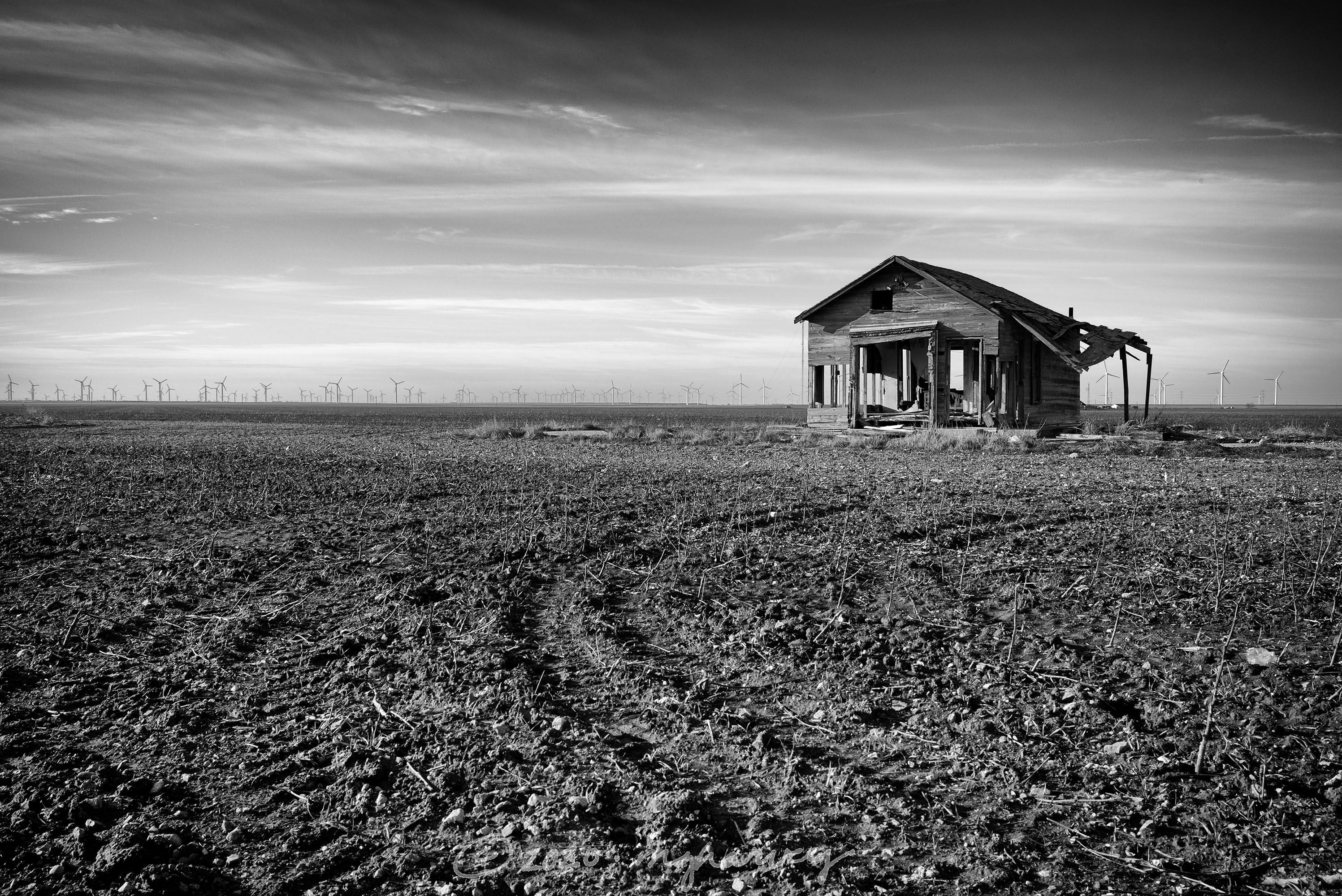 Here’s our situation, conveniently located within one photograph: an almost-gone farmhouse and so many wind turbines I can’t even count them.