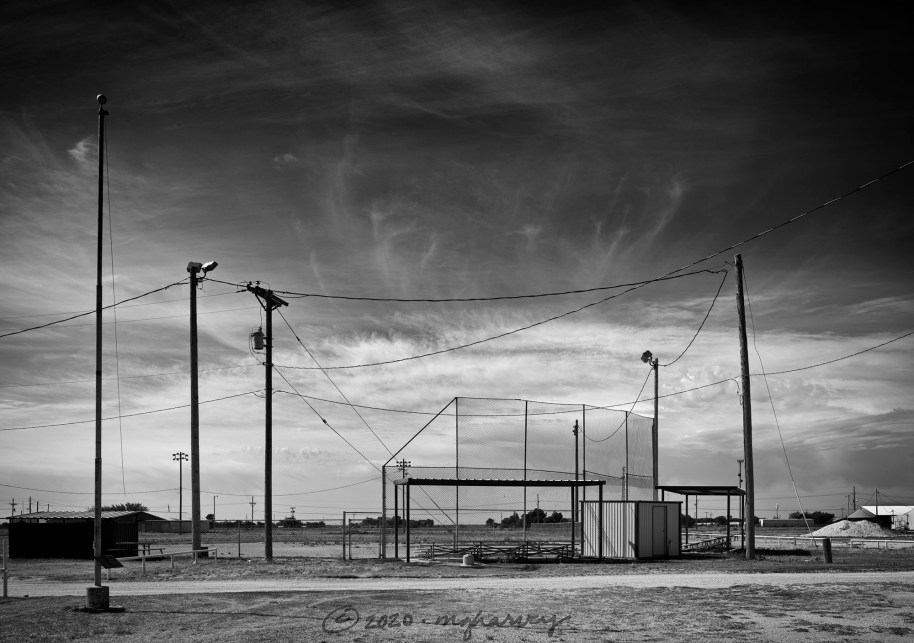 I didn’t really plan on shooting a series of photos of vacant ball fields, but yet here we are with another ball field in another town. Sometimes Grand Concepts can sneak up on you, but so can finding yourself in a rut. And from a certain angle it’s hard to tell which is which.