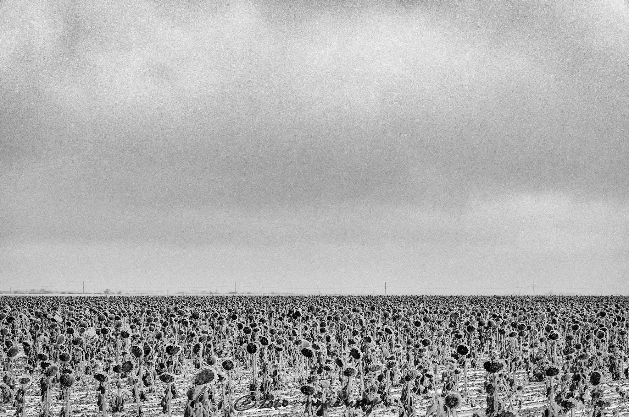 Farmers around here grew a lot of sunflowers this year. And toward the end of the season, there were a lot of people standing the edges of the fields to get photos. I didn’t stop then, when the flowers were bright and full. But the day of the ice storm? Yes, that was the day I went out to see the sunflowers. The thick coat of ice made everything look blurry and out of focus, an effect I hadn’t quite anticipated but that I rather liked.