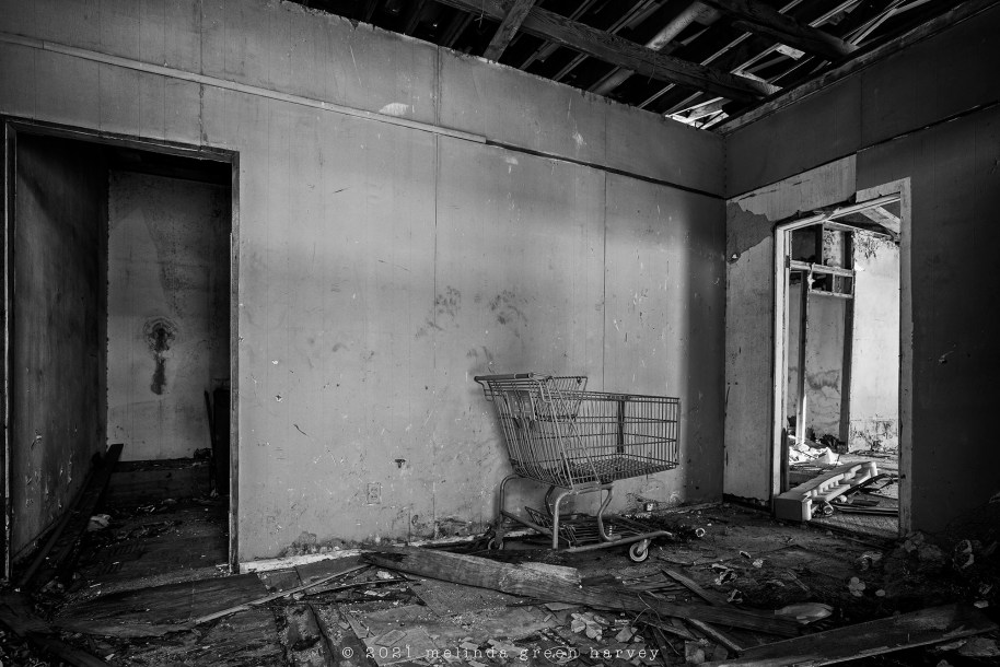 In May of 2014, this place was sturdy enough that I walked inside and took this picture of the scales. The other day, the scales were still there but most of the floor and a good part of the ceiling had given way. Good thing I went inside in 2014, I guess.