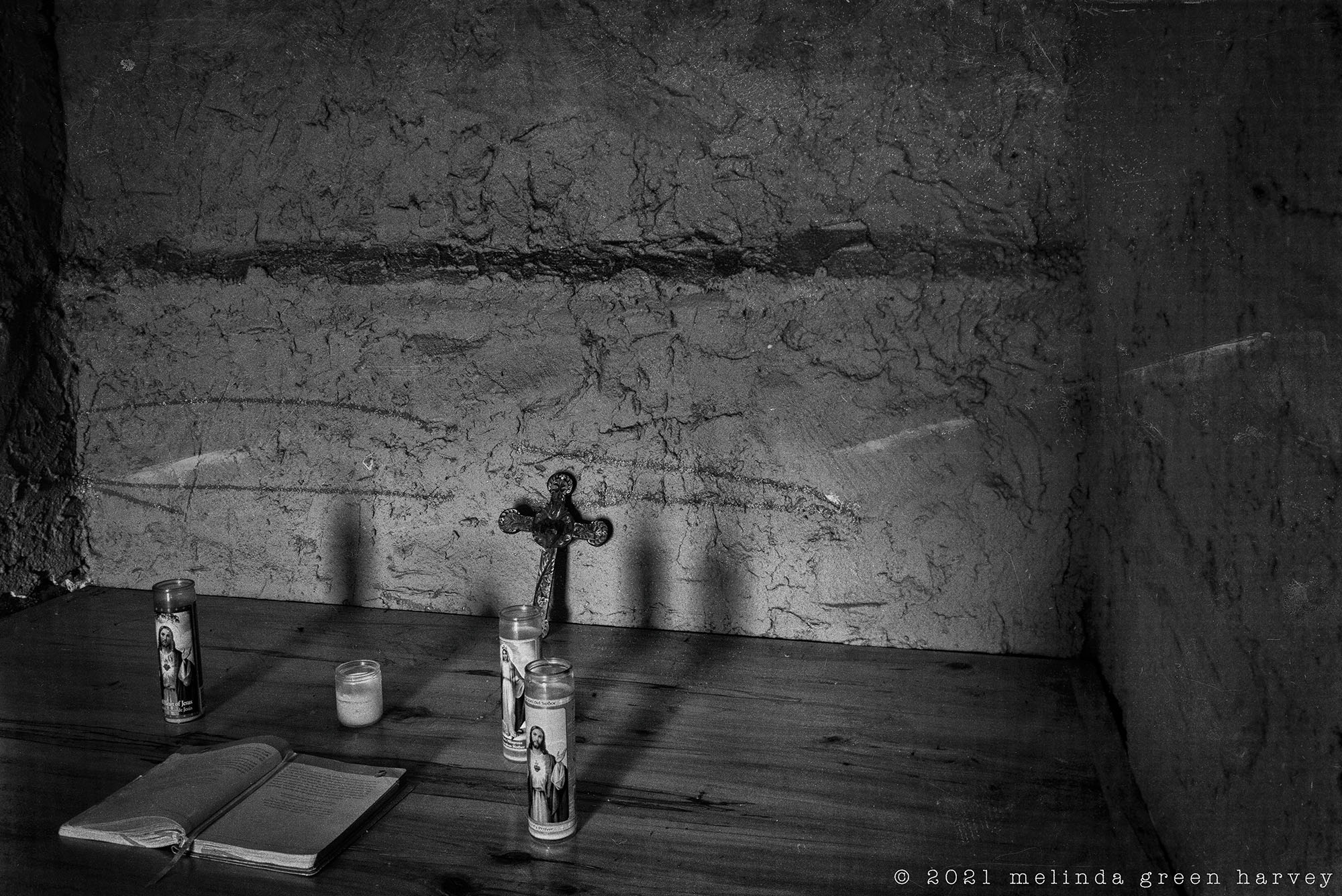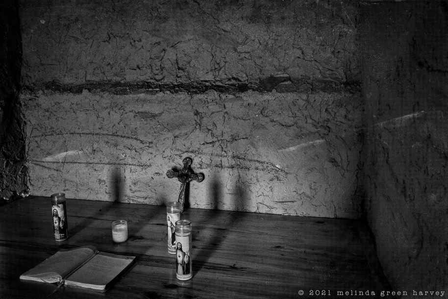 Out there on the far side of Brownfield there is a roadside shrine: a tall cross, a grotto, floodlights – the whole thing. I’ve photographed it twice. I still don’t really get it, but this time I did learn that diffused and shadowy light outside can still make interesting shadows in the grotto.