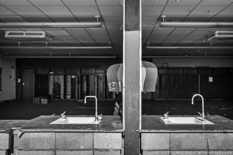 The Patient Spouse was driving me around the other morning and we happened to go by this school building that was in the early stages of demolition (making way for a newer, fancier, bigger facility). The worker approached me and asked if I’d like to look around inside. That was exactly the opposite of what I thought he was going to say, but I did happily accept his offer.