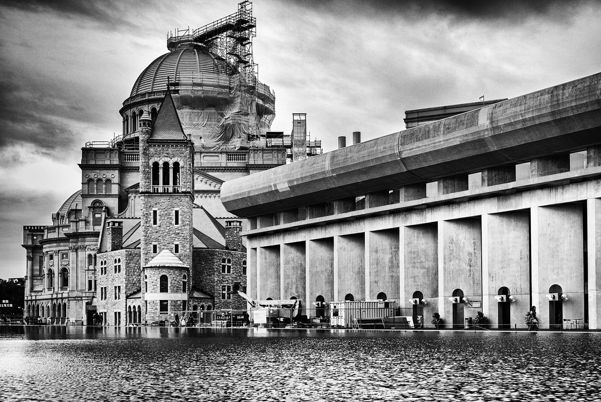 The building on the right was part of a 1970s grand expansion of the church’s facilities. It was designed by famed architect I. M. Pei, and (believe it or not) won a bunch of awards, include the Prestressed Concrete Institute Award (1973), the Design Award of the Concrete Reinforcing Steel Institute (1975), and (this one’s my favorite) the 1975 Harleston Parker Award from the Boston Society of Architects for the “most beautiful piece of architecture” built in Greater Boston in the past ten years.