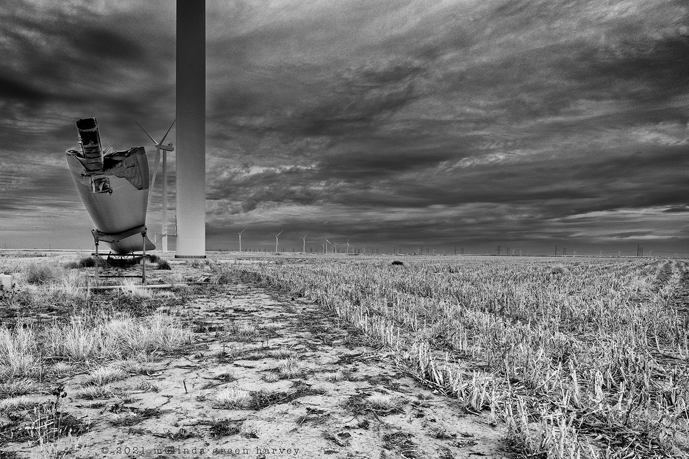I am not sure what happened to this turbine blade. All I know is that I stopped by there to photograph it on November 21; I wasn’t happy with those shots. So I stopped by there again a week later to give it another try. That might indicate a great level of dedication. Or it might indicate a complete lapse in photographic skills on the 21st.