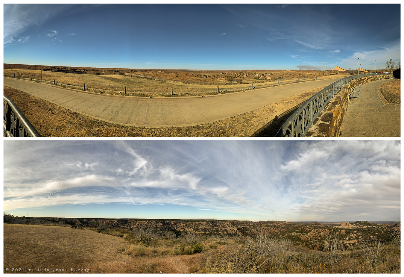 Here are a couple of iPhone panoramas that may help dispel that line of thinking. The top one is a highway rest area along Interstate 40. (That smudgy grey thing on the horizon on the right side is wildfire smoke.)