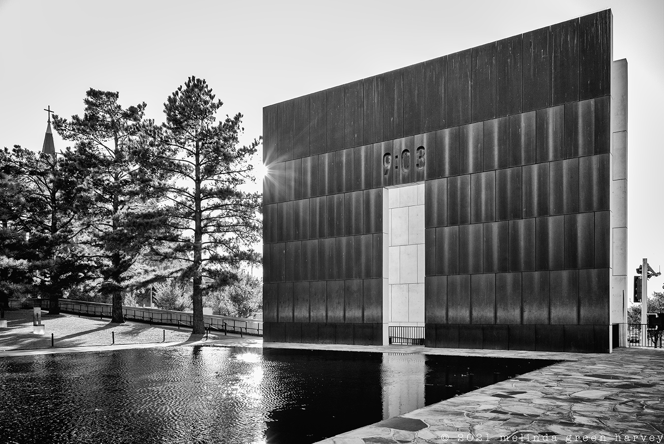 The Oklahoma City bombing memorial is carefully and thoughtfully designed place. In addition to the Field of Empty Chairs, it includes the element called the Gates of Time, which are described this way:
