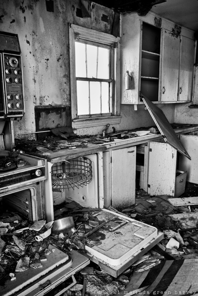 I have looked inside many abandoned buildings. And I will never, ever be able to accurately predict what I’ll see. I did not expect a kitchen in the back corner of this building that had a faded Lions Club emblem on the front. I didn’t imagine that all the doors would be open – or in that one case, hanging from a single hinge. And I didn’t even know that at one point the top shelves of dishwasher were a space-wasting circular design.