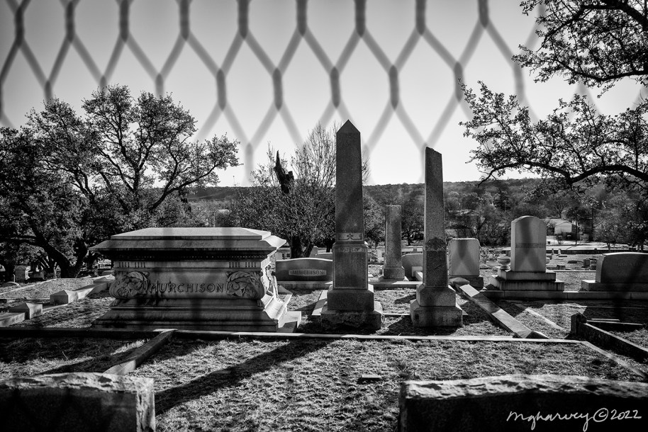 The last row of family plots, at the top of a hill, had fences around them. I don’t know if they were trying to keep people/spirits in or out. But I do know that I made this photo from inside one of those grave-cages, so maybe they aren’t as effective as they were meant to be?