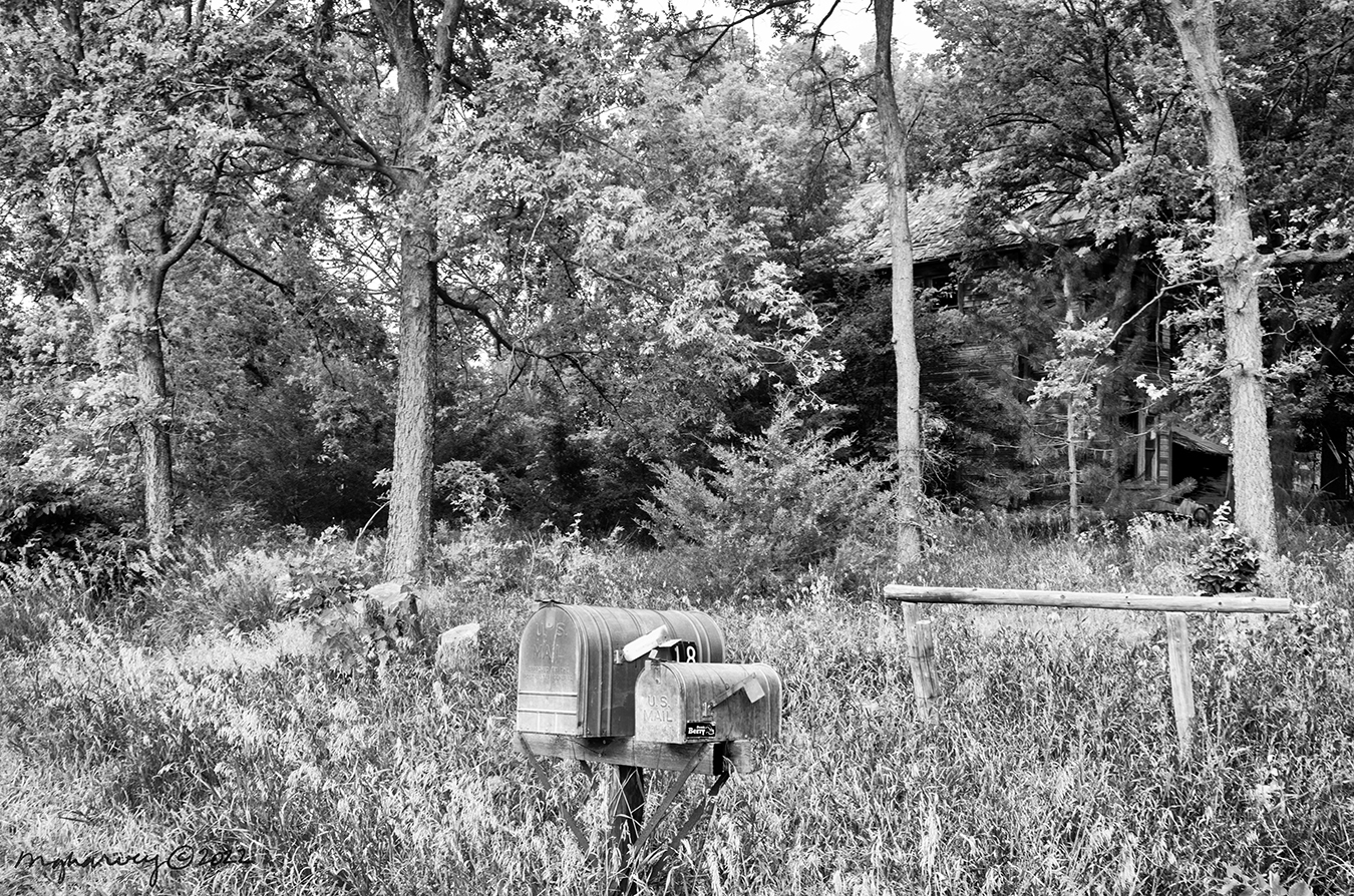 If you’ve been around my work for more than say 10 to 13 minutes, you know that I photograph a lot of abandoned places. Rarely do I get bad vibes at a location…but this place (the place in the trees, I mean – not the mailboxes) felt very creepy to me. It was almost to the level that I call Murder House. And that’s why there’s just the one photo – sticking around wasn’t a thing I thought I needed to do. You know, in case it WAS a Murder House.