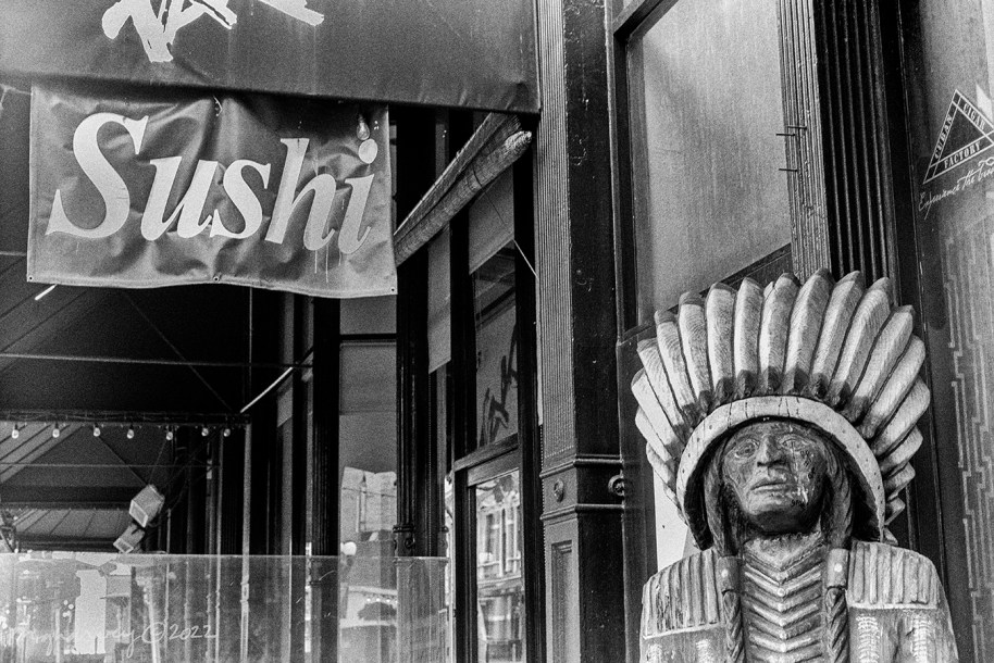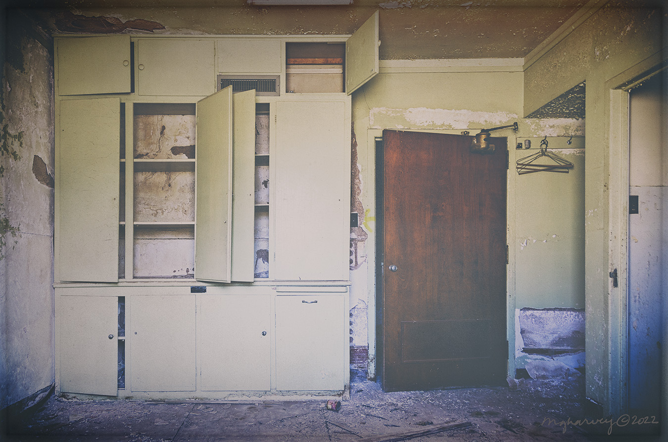 This building is boarded up now, but back in the Olden Days of 2014, all I had to do to see this scene was to walk down the alley and look through the broken glass.