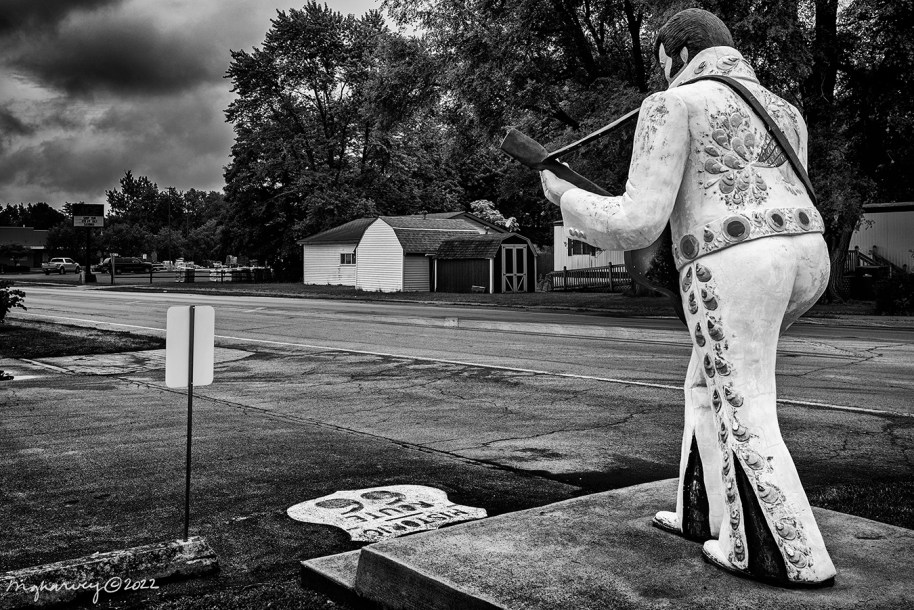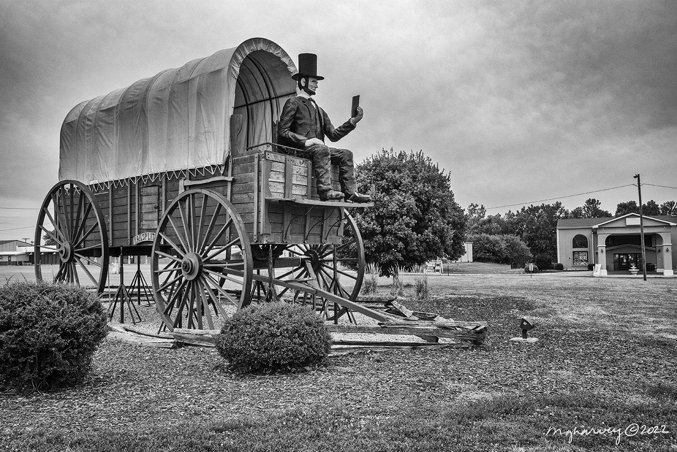 In addition to the giant covered wagon with book-reading Abe, there is a marker downtown commemorating the time in 1853 when our boy Abe christened the town (just named Lincoln!) with watermelon juice. (“From a cup,” according to the ever-helpful EZ Route 66 Guide for Travelers.)