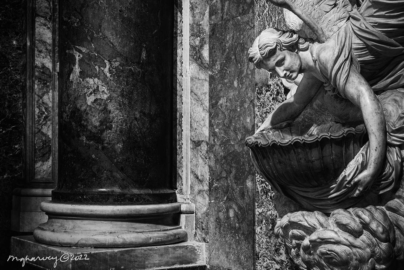 I love church statues. And if the statue is an angel, swooping down with a shell-shaped font? You know I’ll love that even more than a normal statue.