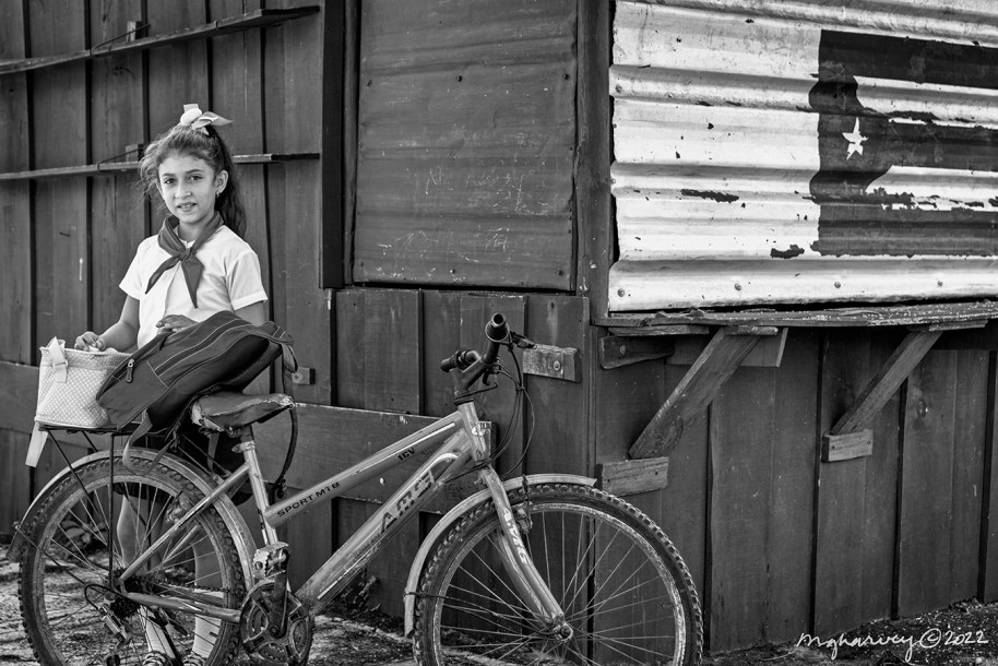 School attendance is mandatory in Cuba between the ages of 6 to 16. This girl’s uniform indicates that she’s in primary school. Cuban primary school curriculum includes dance and gardening, lessons on health and hygiene, and Cuban revolutionary history. All levels of curriculum focus on the principles of hard work, self-discipline, and love of country.”