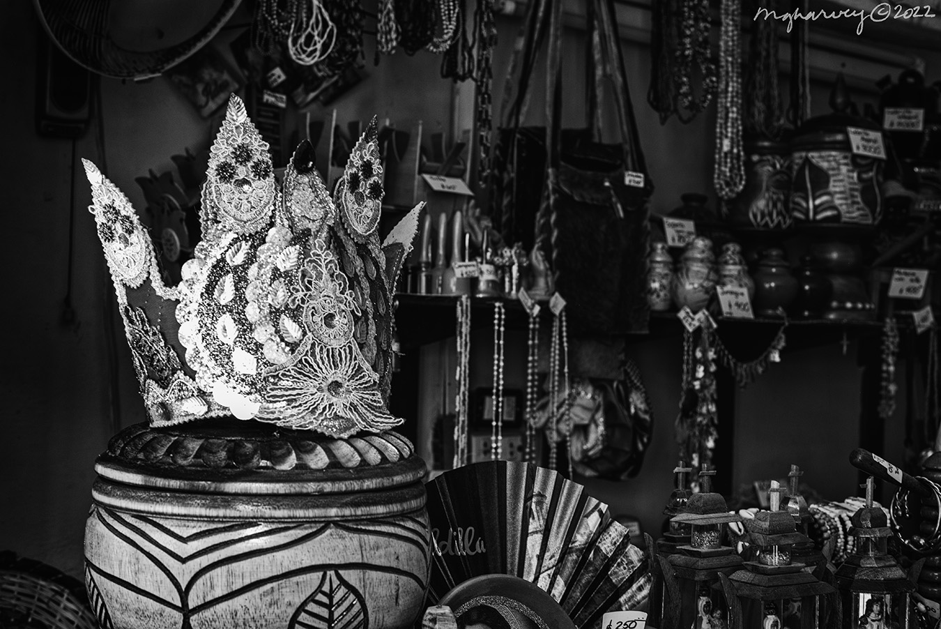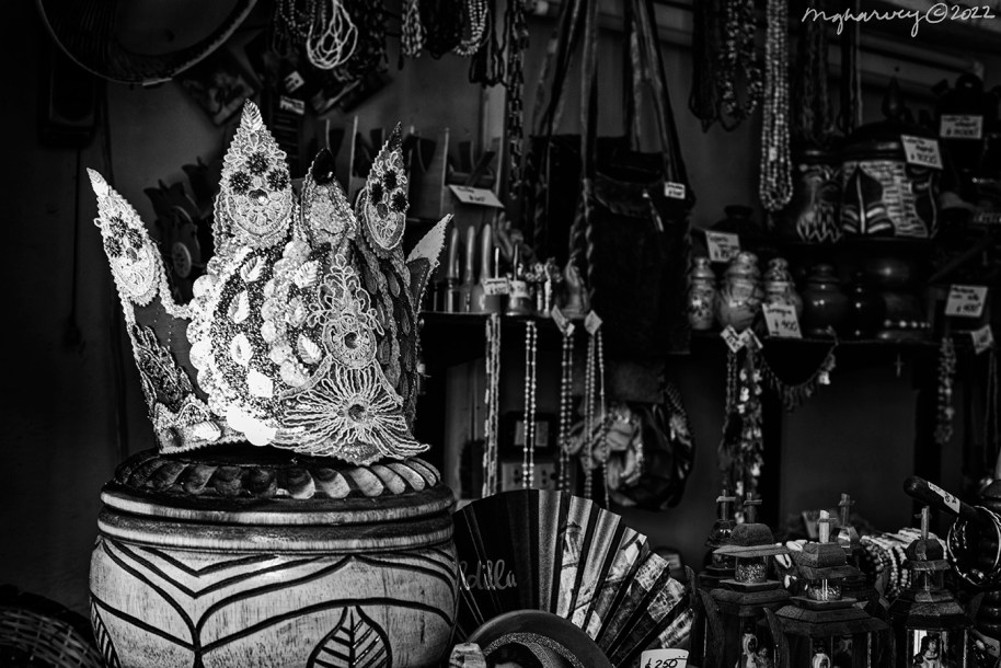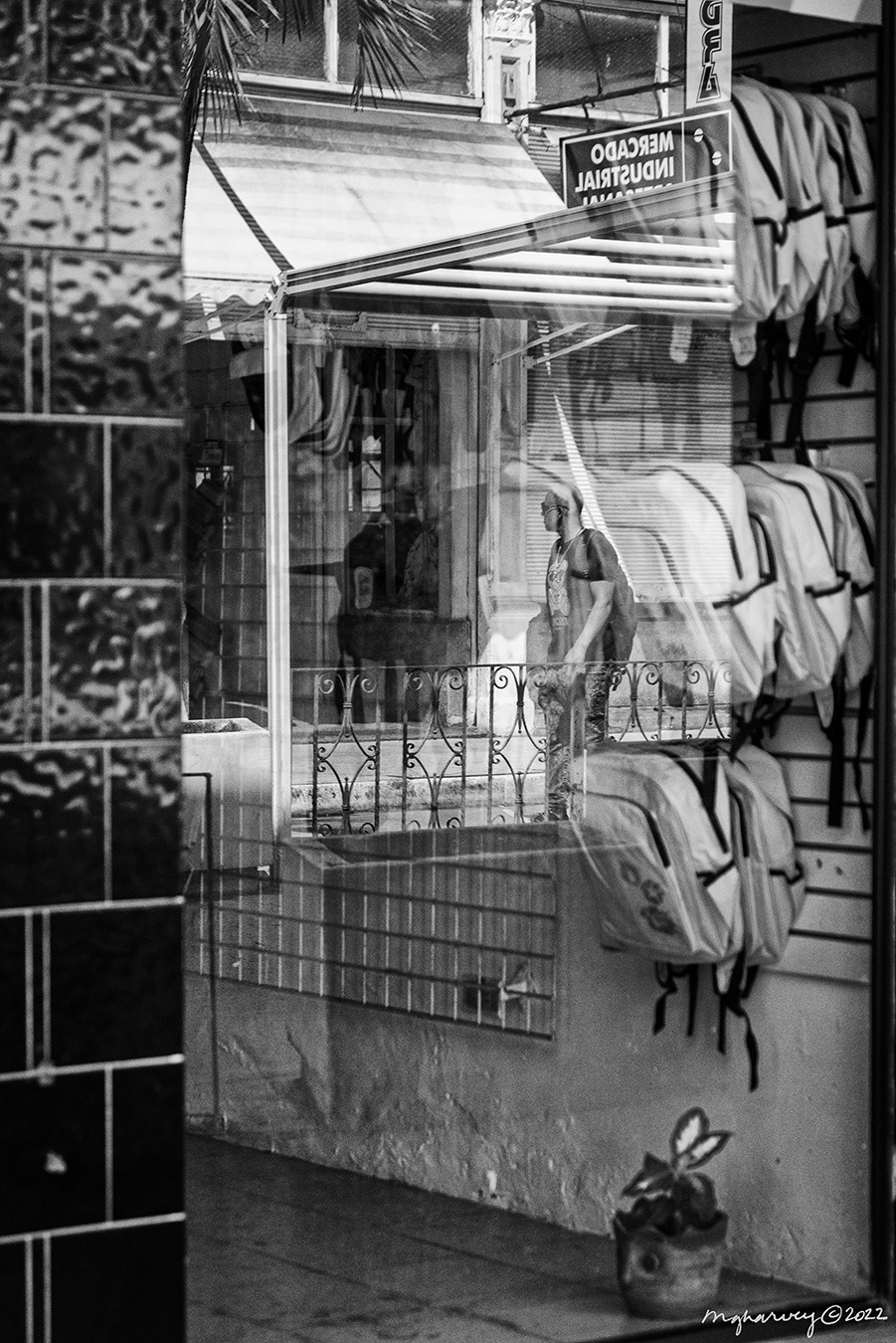 I stepped into this little shop – next to the boxing gym and across the street from a church (Gimnasia de Boxeo Rafael Trejo and Hermandad de la Santísima Trinidad, if you’re keeping up with stuff like that) – because I spotted that sequined hat (?). The interior of the store was dark and it seemed like the hat (?) had stolen all the light for itself., leaving all the other religious artifacts to fend for themselves.