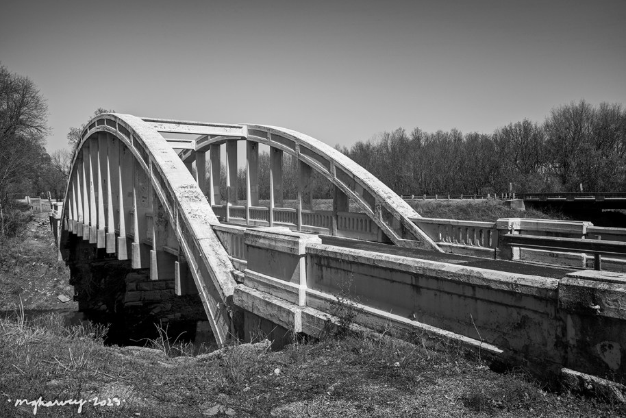 Yet somehow I ended up here, getting myself quite interested in this bridge. It’s called the Rainbow Bridge (named before that term’s current connotation) and it’s 100 years old this year. It is only one lane wide and is a single-span design called a Marsh arch, after its designer James Barney Marsh. And, it’s the only surviving bridge of this design on the entire 2,448 miles of Route 66.