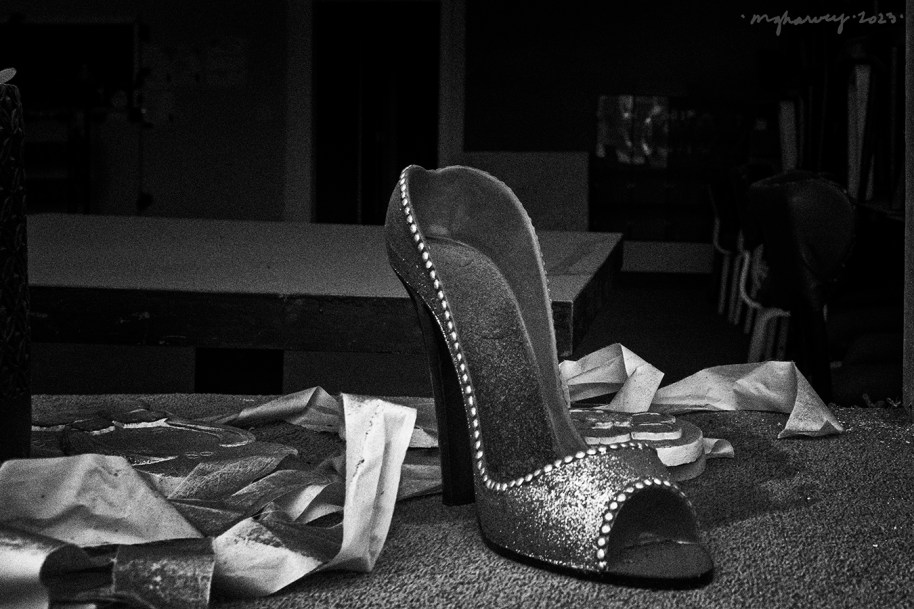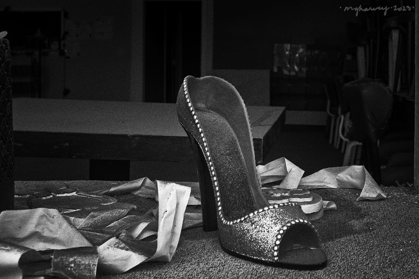 On that forgotten visit, I failed to photograph the Cinderella shoe left behind in a storefront display, but I got it this time around.