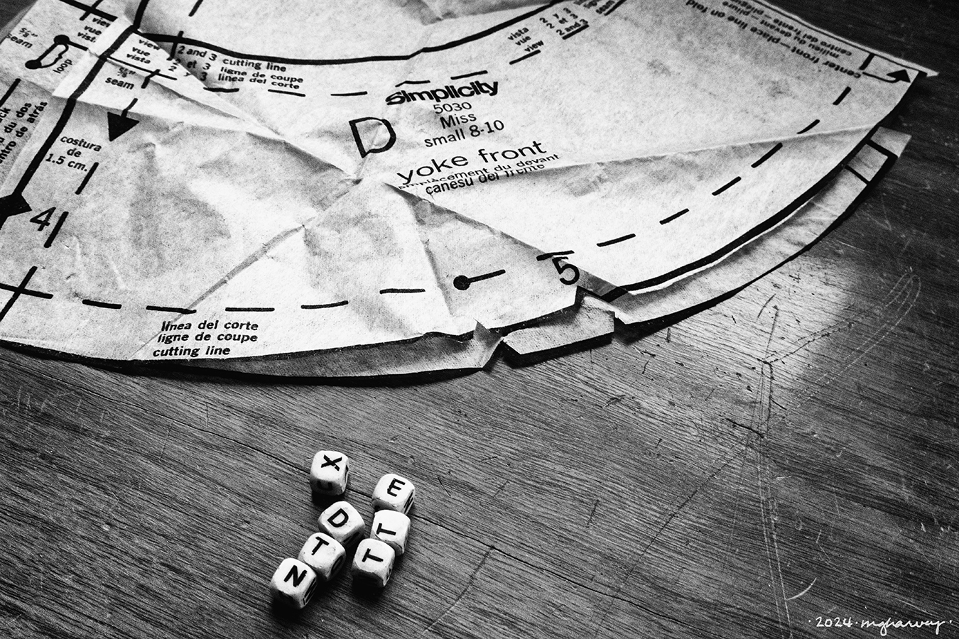 (And also, that pattern piece is for a nightgown. I looked it up. Also you cants spell too much from those Boggle pieces, which somehow escaped from the rest of the game.)