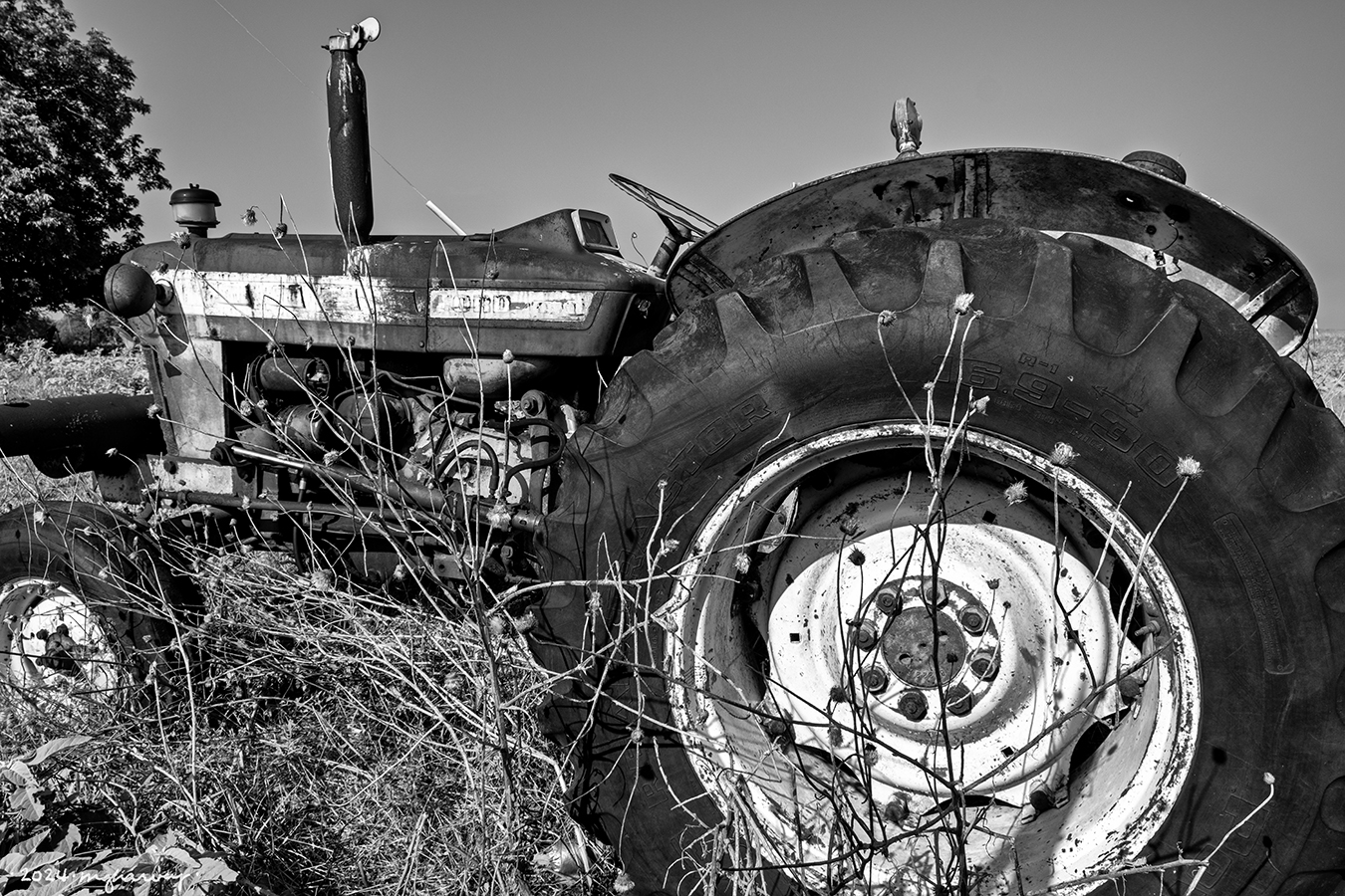 As a sort of consolation plan, we stopped by this abandoned tractor and I was able to take as many as three sticker-free steps and get the shot. Finally! A win!