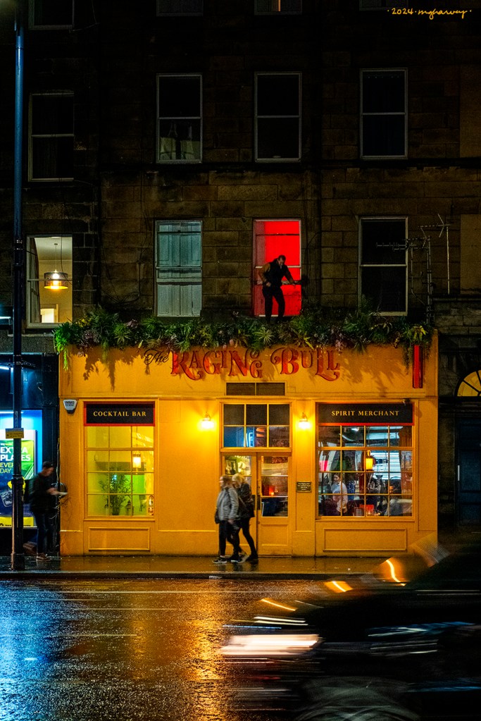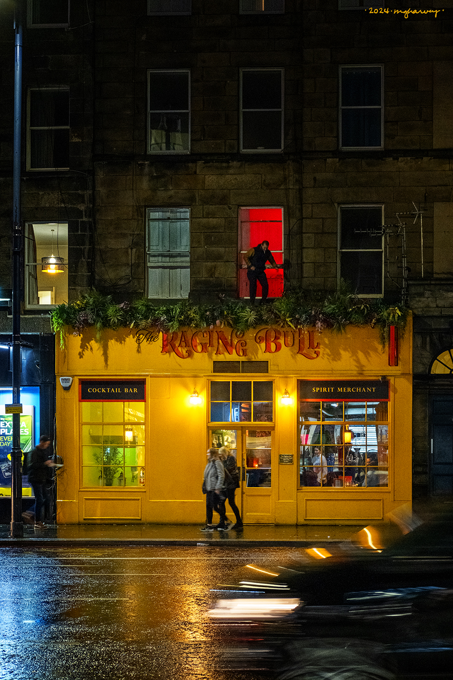 I really don’t have the faintest idea what that guy was doing up there – the one standing in front of the red window. It’s not like it was a balcony. It’s not like it was balcony weather. I just don’t know. It may have had something to do with the spirit merchant on the ground floor or it might not have. Other than that guy, I suspect that no one else knows. Or even noticed what was going on.