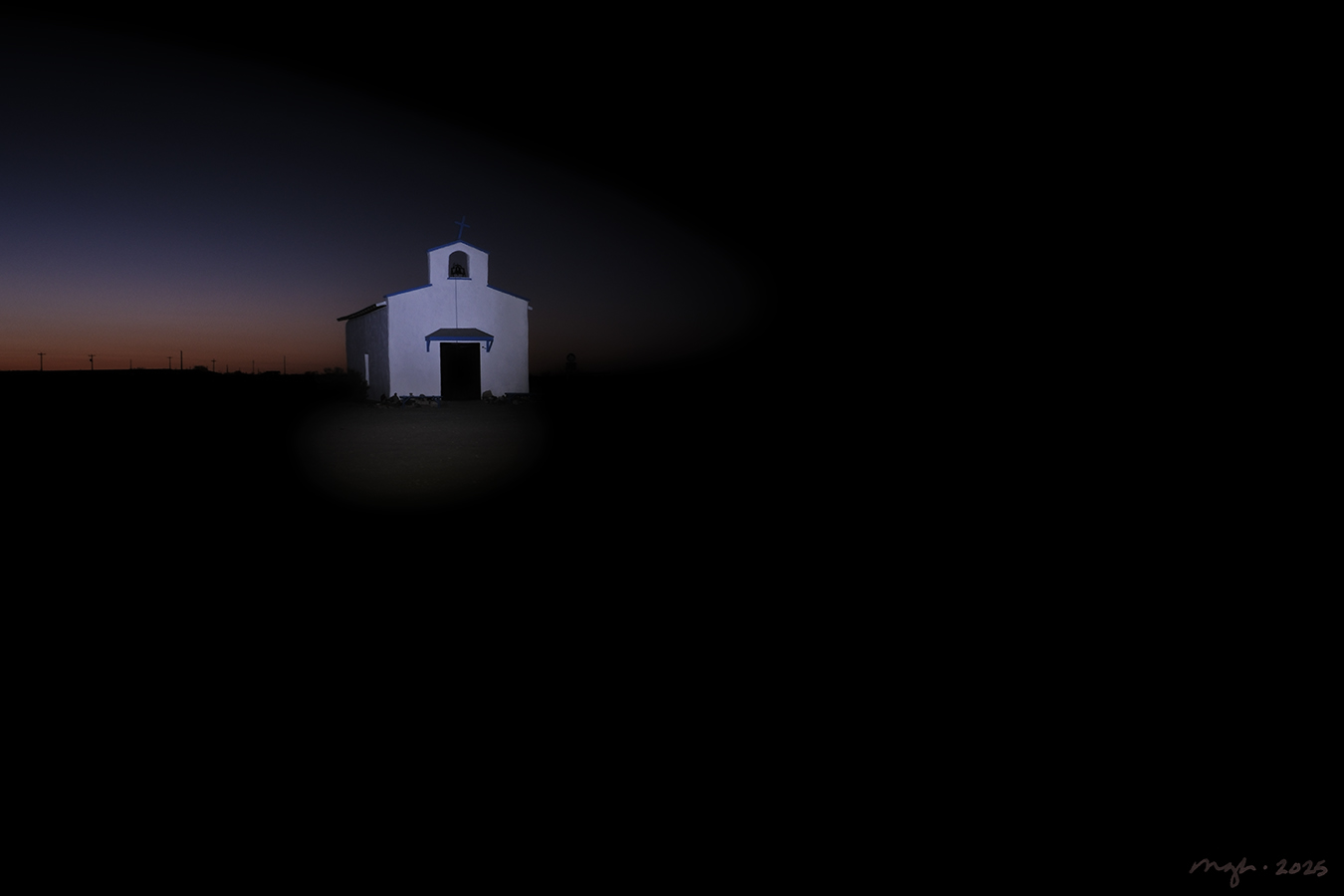 In my mind, this little chapel is a comet and the red and violet sky behind it is its tail.
