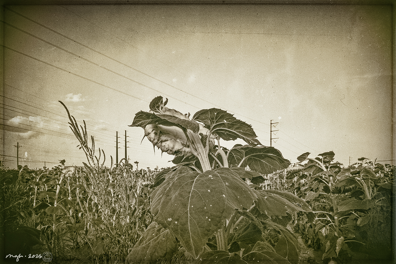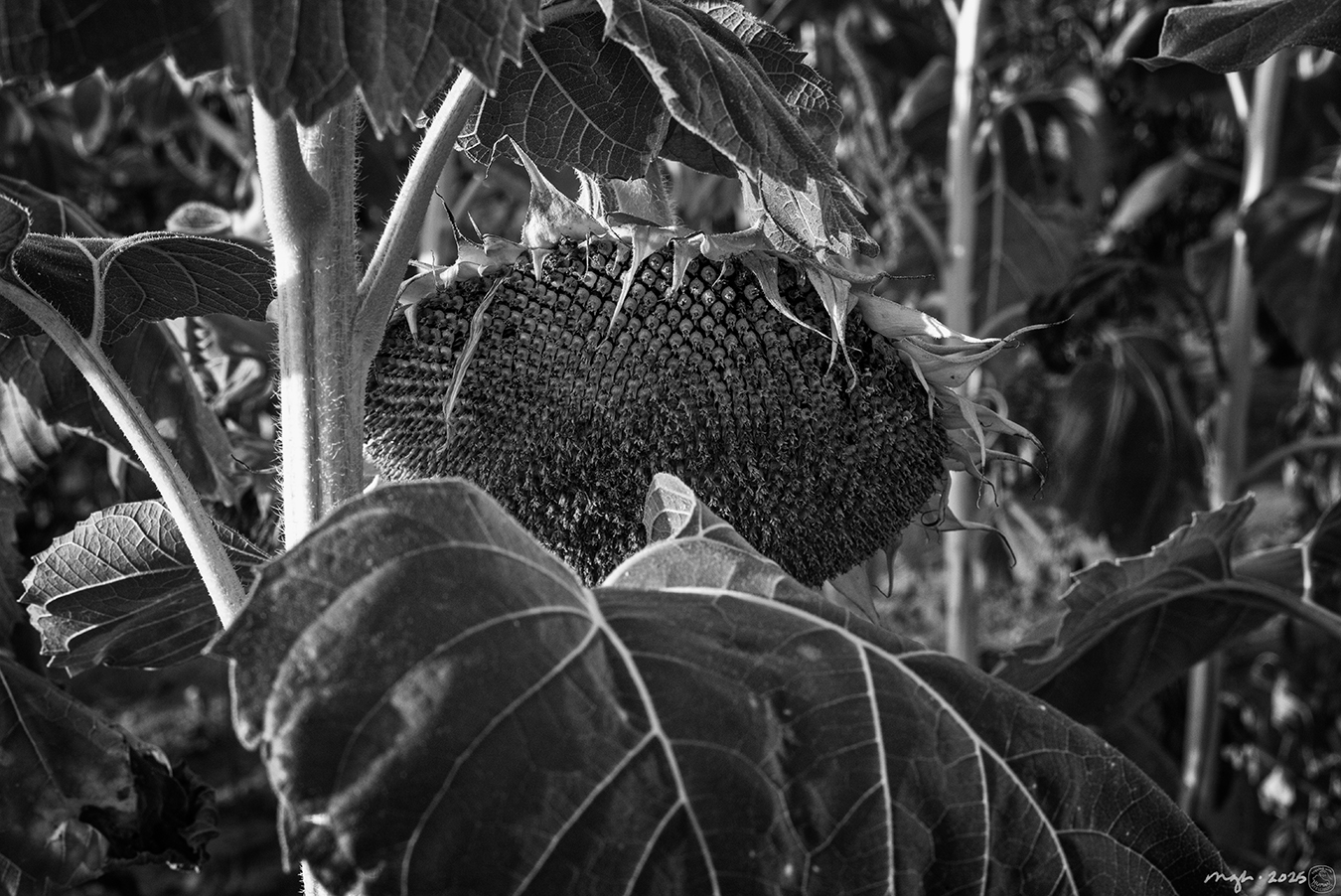 But what I can see are that the sunflowers have drooped toward the ground, literally hanging their heads.