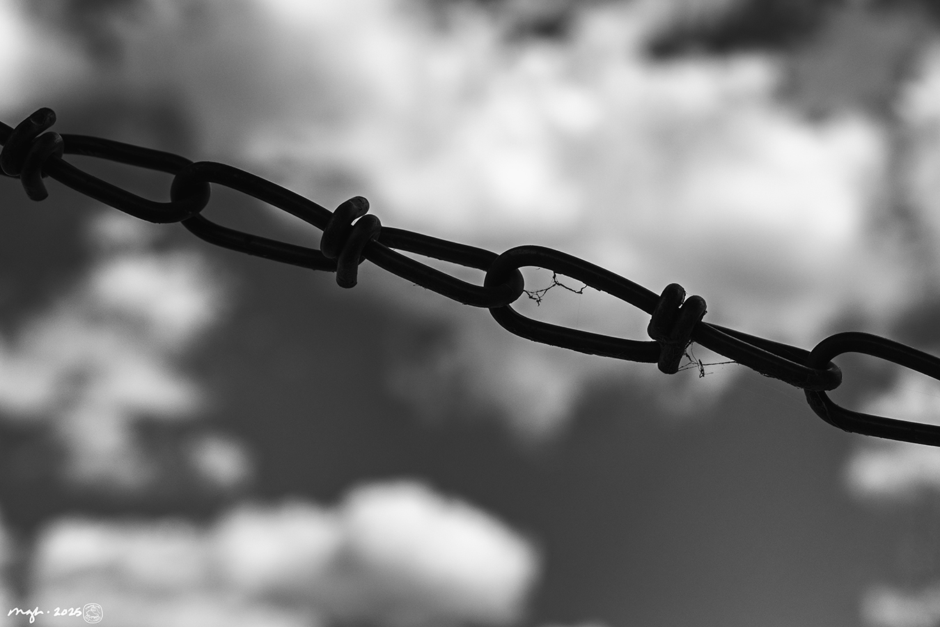 On the far side of this cemetery, there was a little metal shelter, with three benches. Two sides of the shelter had chains across them.