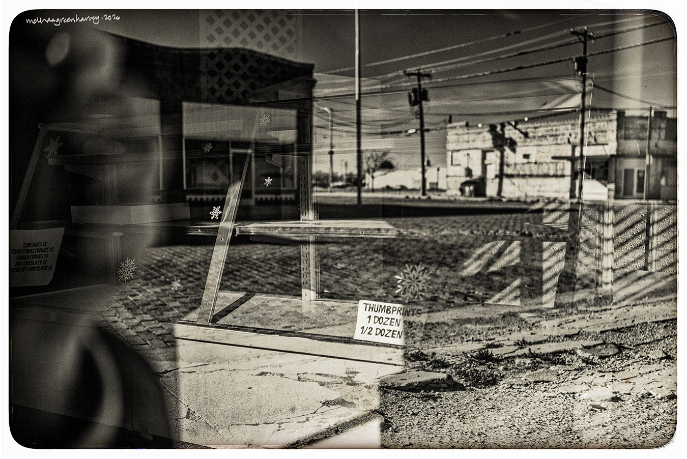 PS – Sometimes I’ll say I document the decline of small towns on the High Plains of Texas as a symbol of greater declines in environmental and societal safety that are mirrored across the country. Other times, I’ll say “rural towns” and if I’m really in a mood, I say “old crap I find.” It’s too hard to explain my deal with reflections.