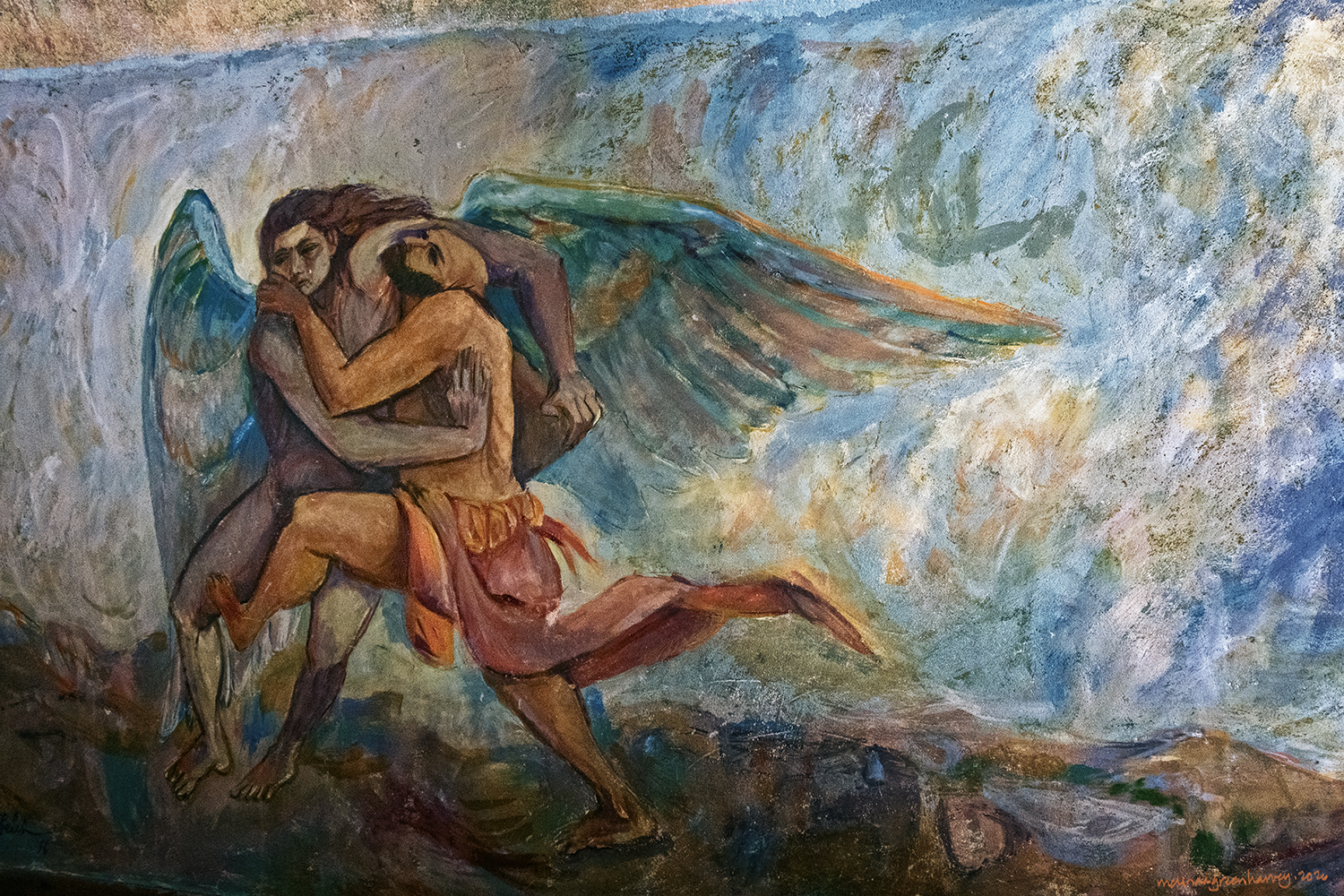 The frescoes at the South Solon Meetinghouse were painted in the 1950s by students from the nearby Skowhegan School of Art. They are interesting, they both do and don’t go together. Some of the students were (it seems) heaving into their Picasso phase at the time. Others *may* have found some mushrooms in the forest, if you know what I mean.