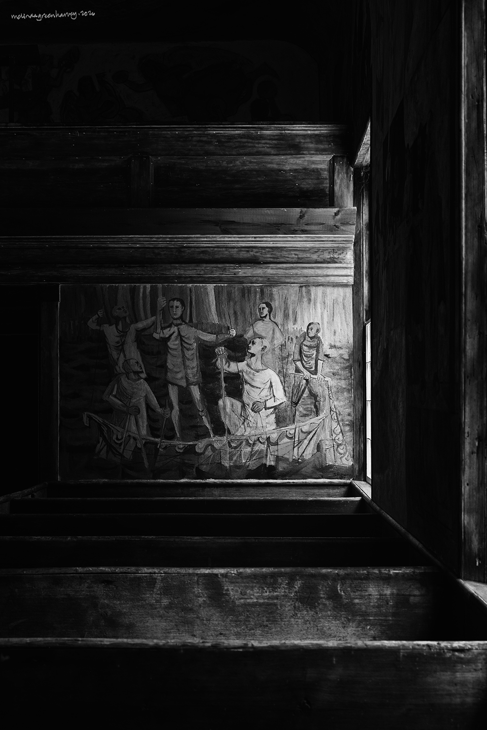 The afternoon sun through the windows gave a nice sideways light to the mural on the wall, which is why I made the photo. (Of course.)