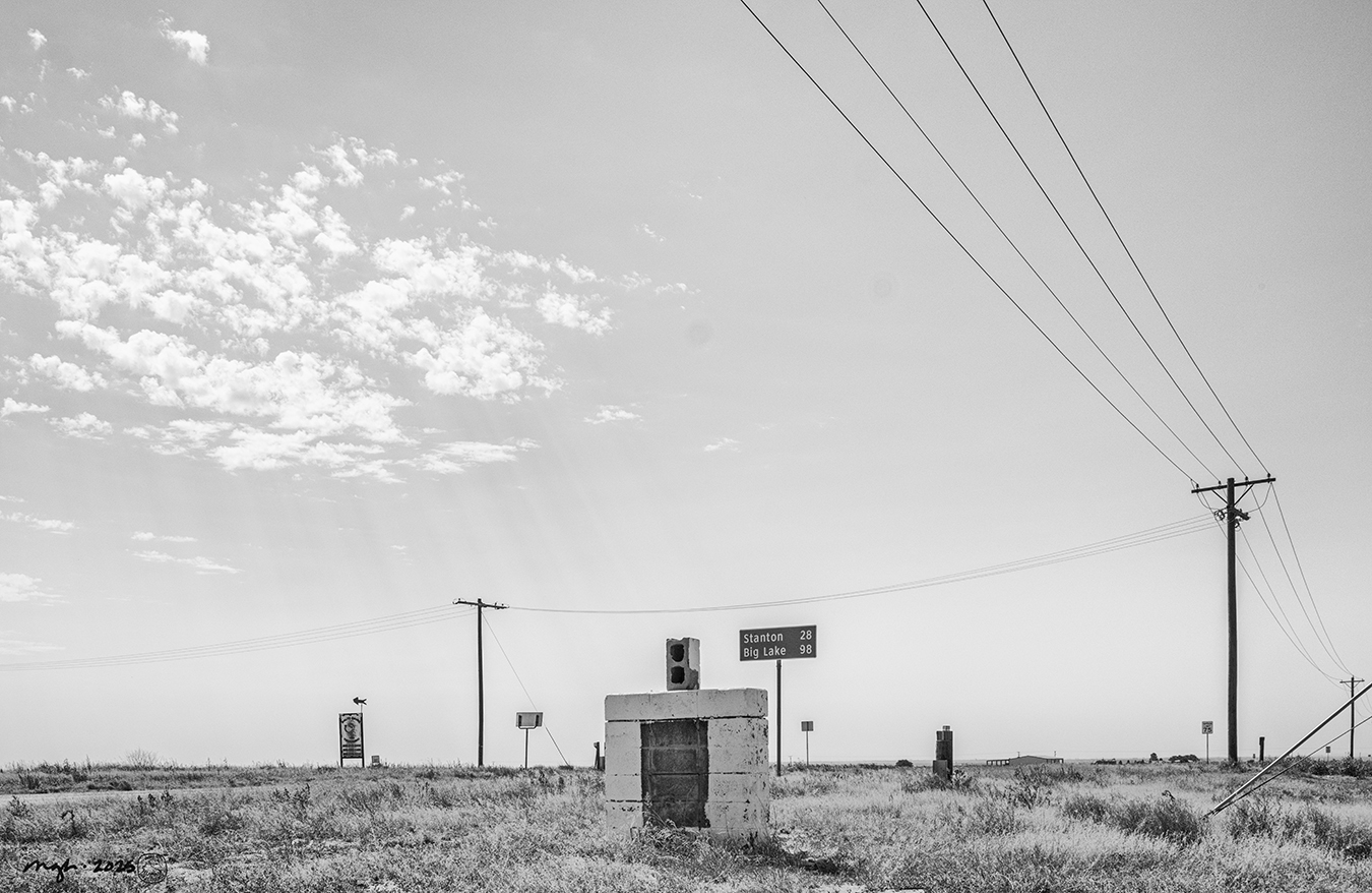 I ended up in this tiny town because there was an unfortunate sign out on the highway that I wanted to photograph (although I will not dignify its message by posting a photo), and while I was at it, I went ahead and checked out the town. And that’s how I happened to see a weather-worn sign for a gun sale and a dinosaur in the same spot.