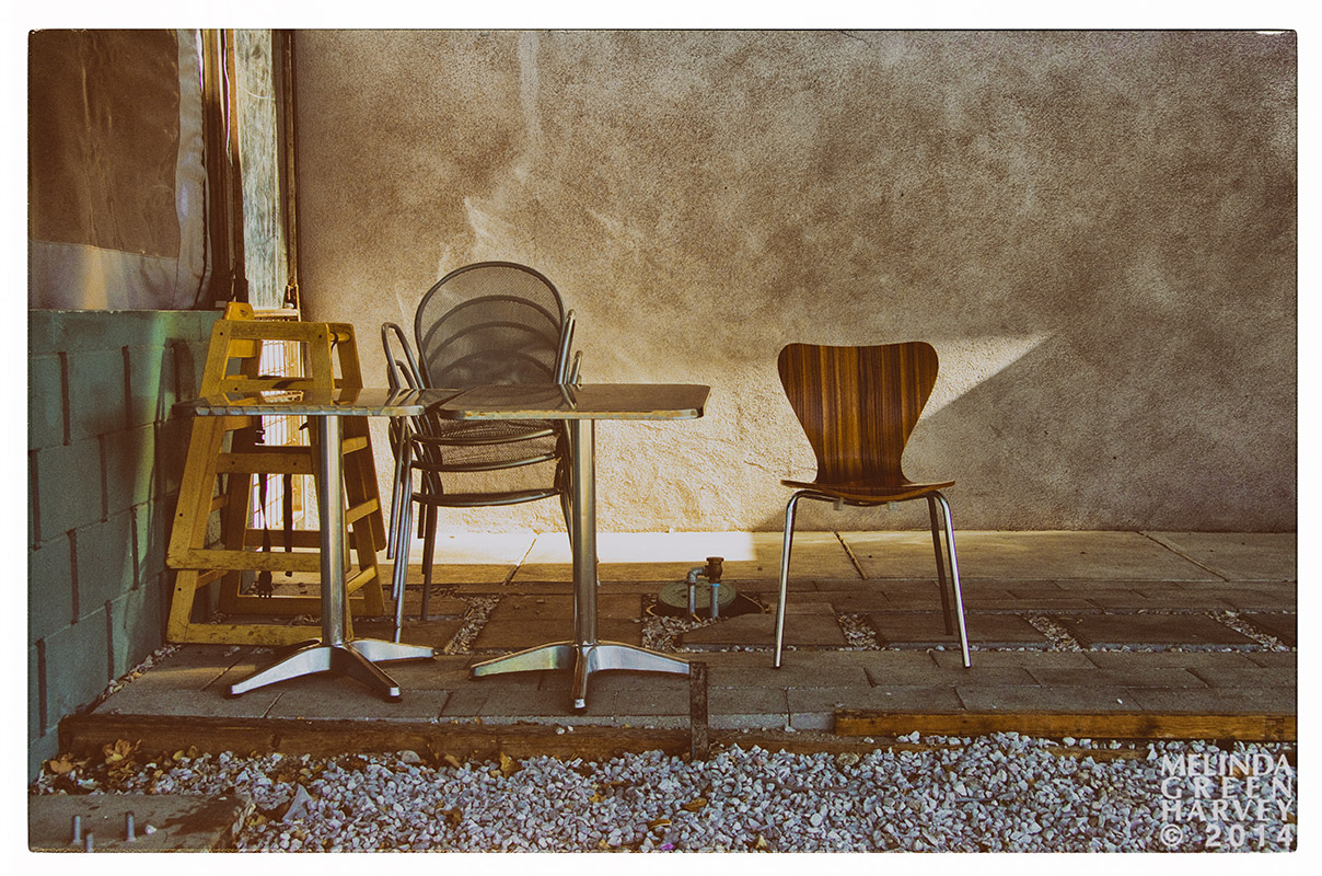 The two square tables had been behaving badly, so the chairs convened a meeting to discuss the situation. It didn’t end well for the tables, who were outnumbered by the chairs.